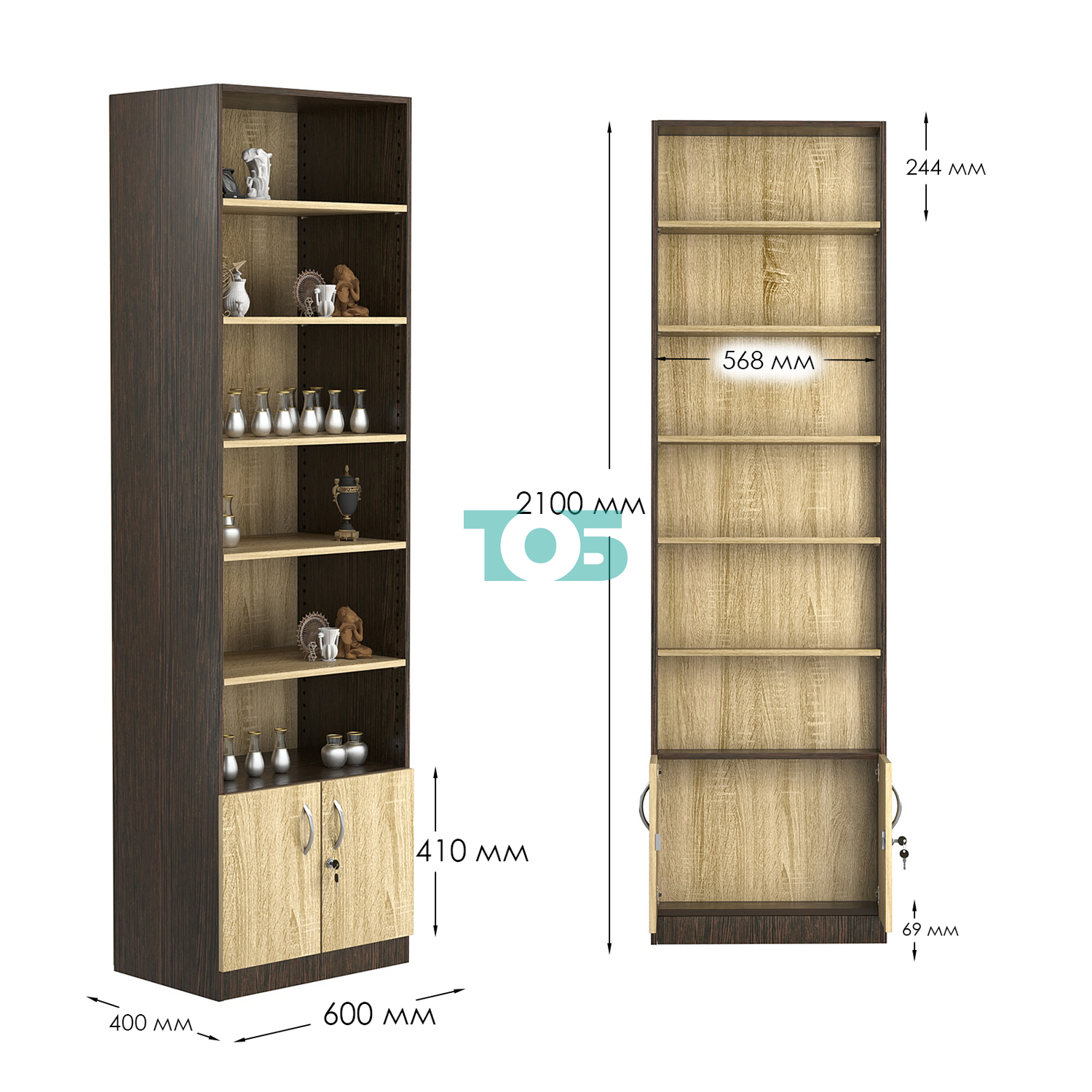 - нижний отсек закрыт распашными дверками с врезным замком;