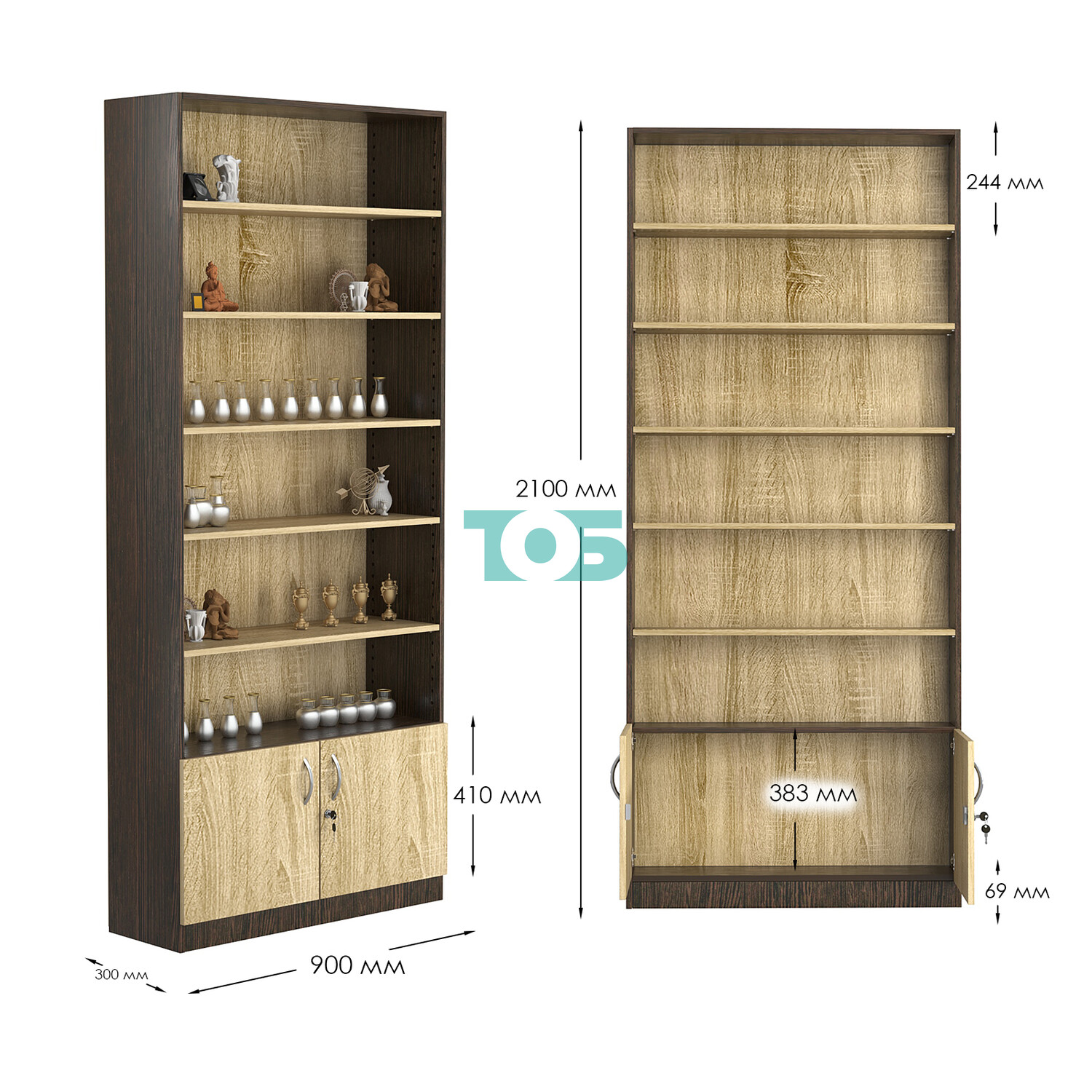 - нижний отсек закрыт распашными дверками с врезным замком;