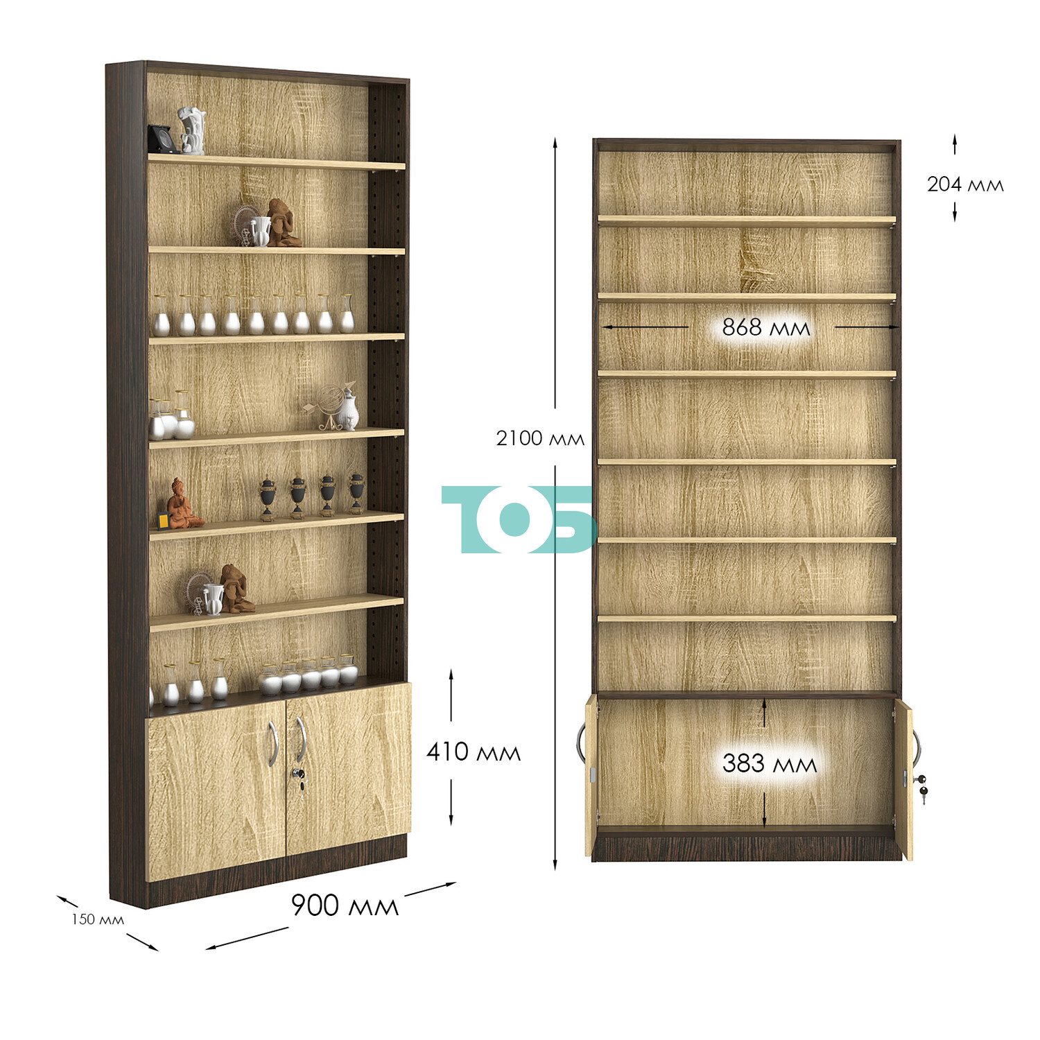 - нижний отсек закрыт распашными дверками с врезным замком;