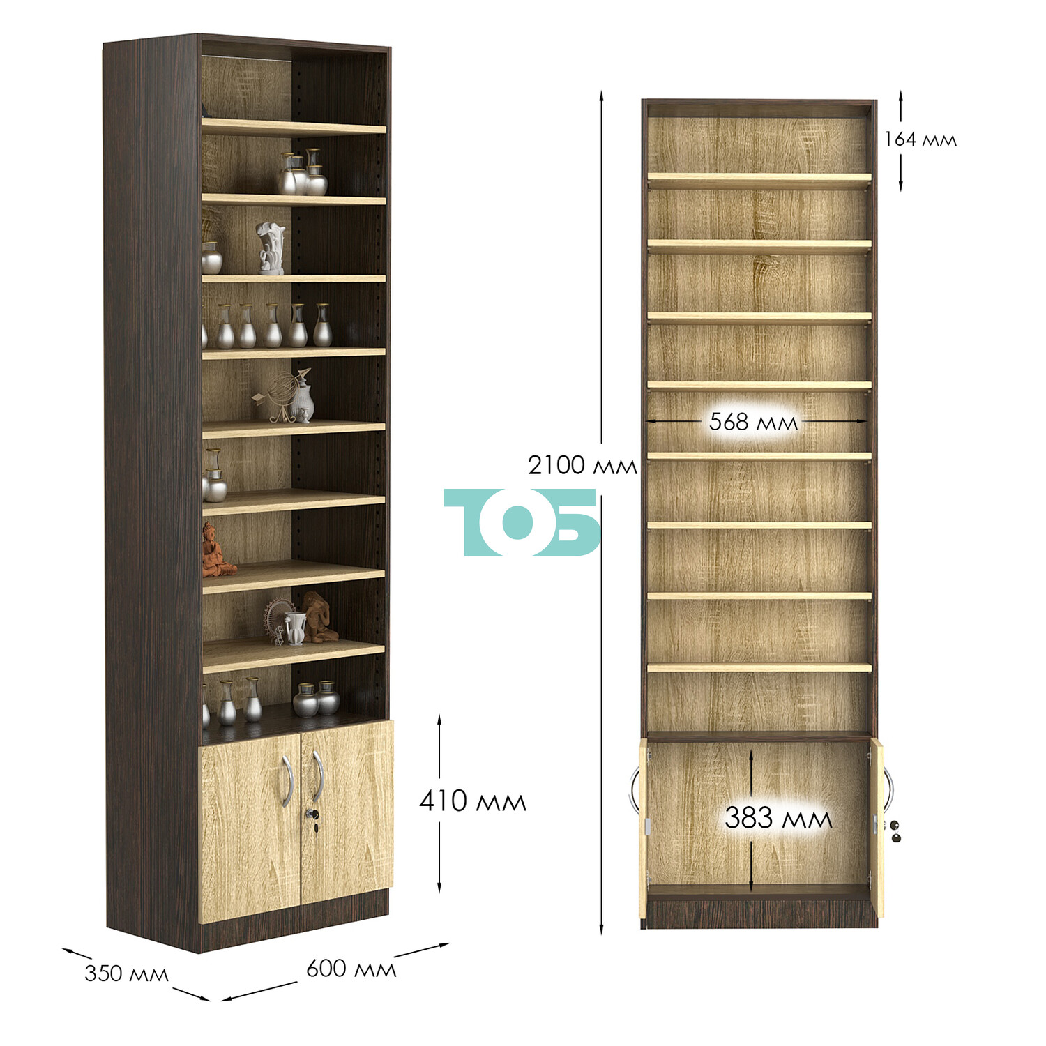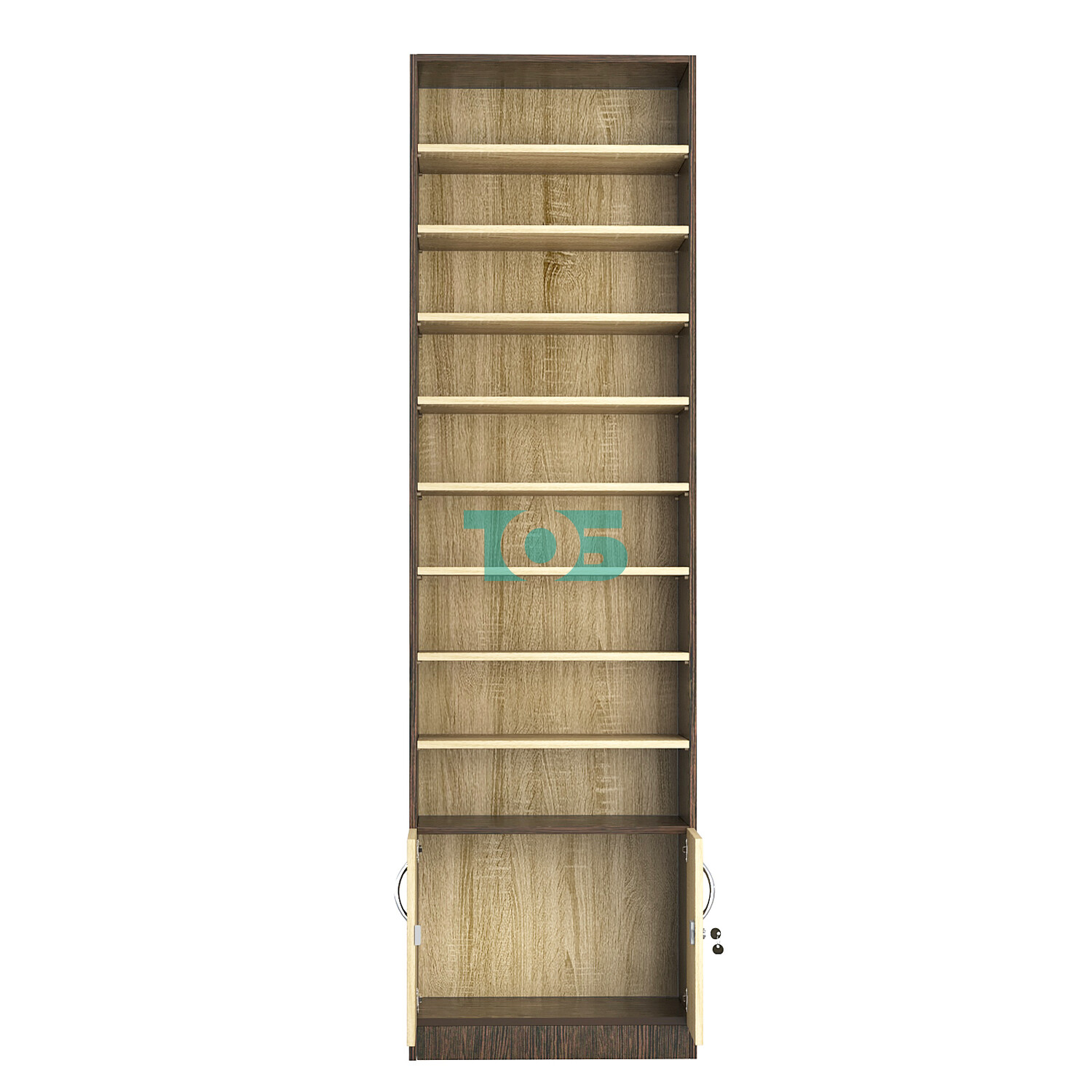- нижний отсек закрыт распашными дверками с врезным замком;