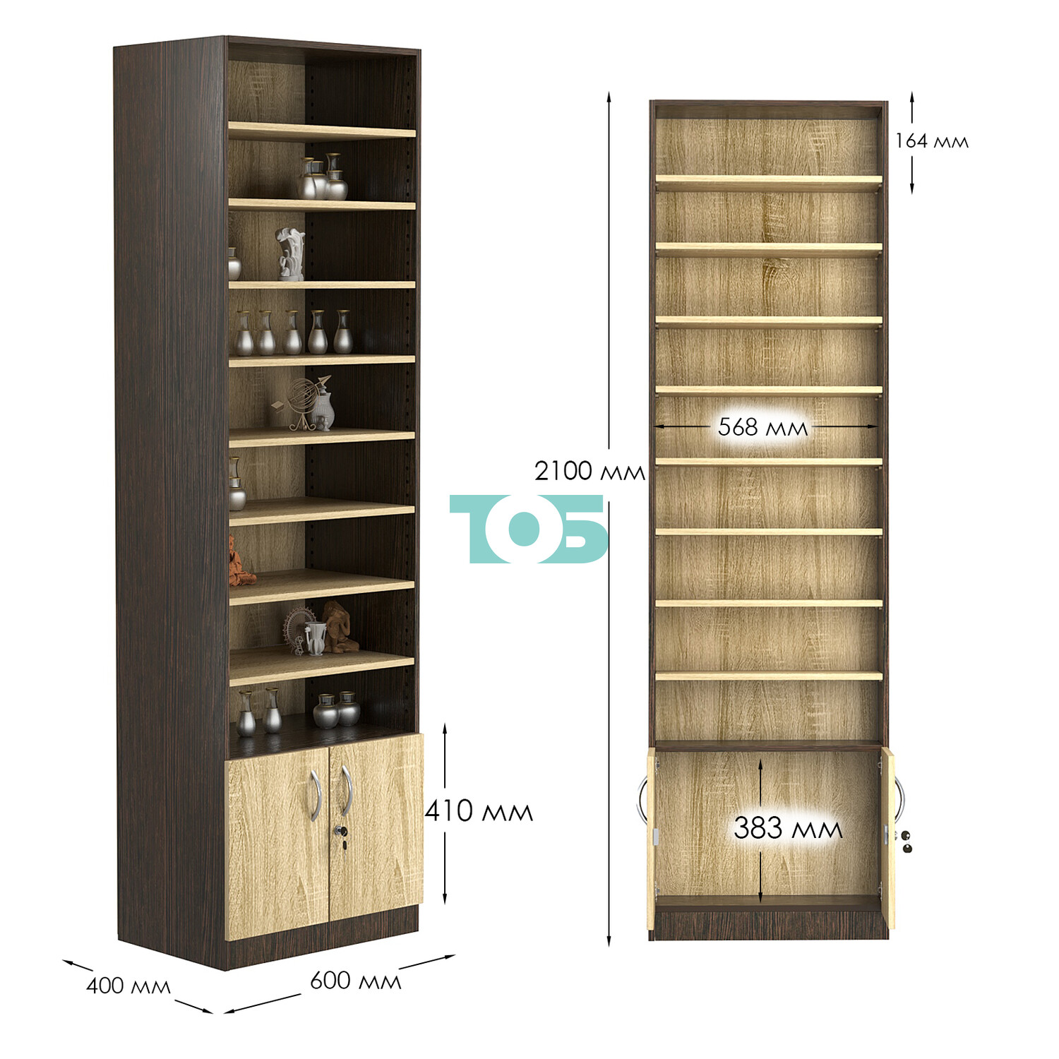 - нижний отсек закрыт распашными дверками с врезным замком;