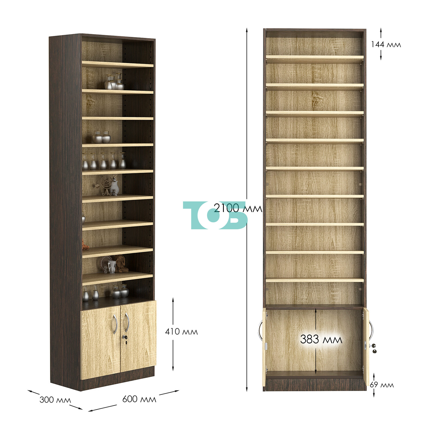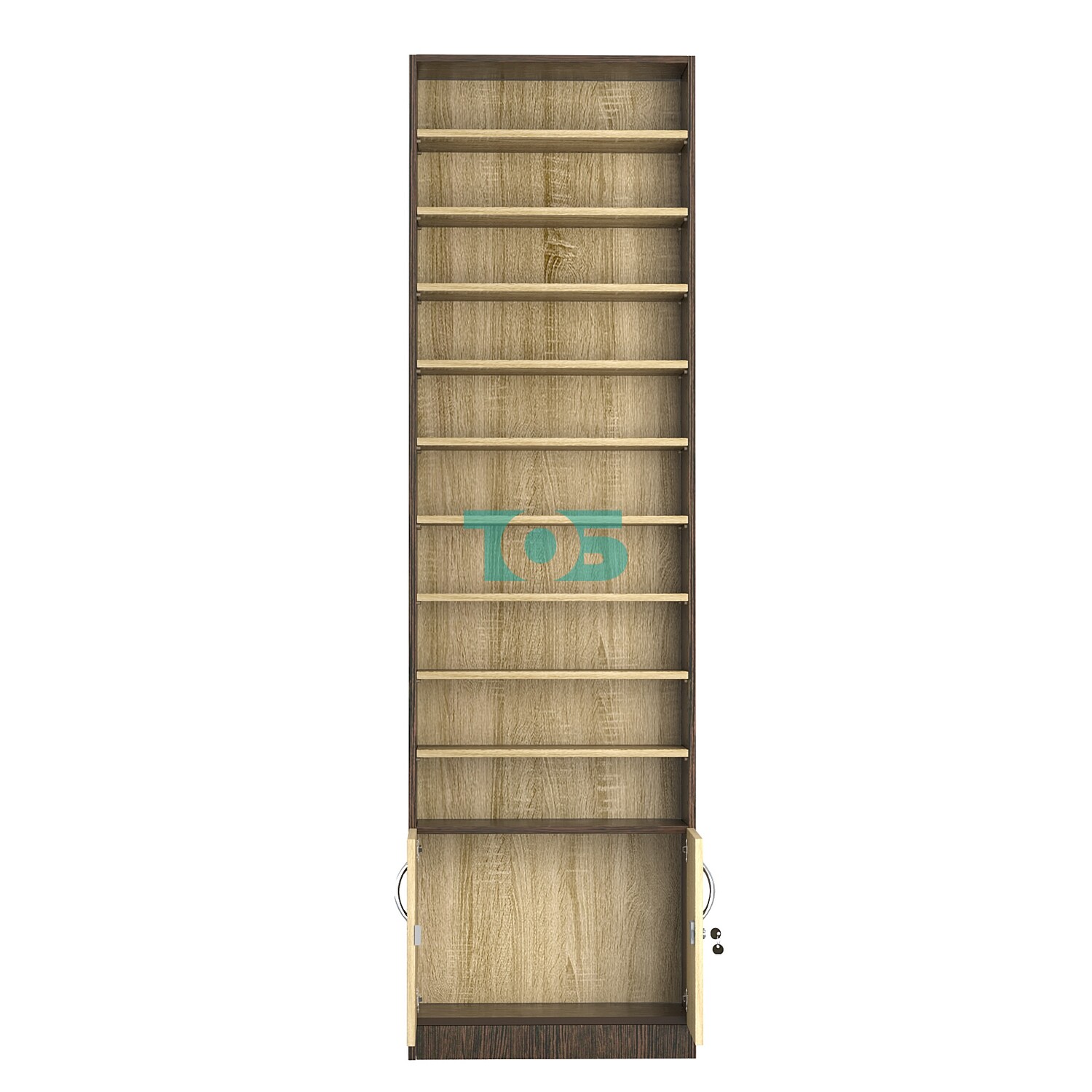 - нижний отсек закрыт распашными дверками с врезным замком;