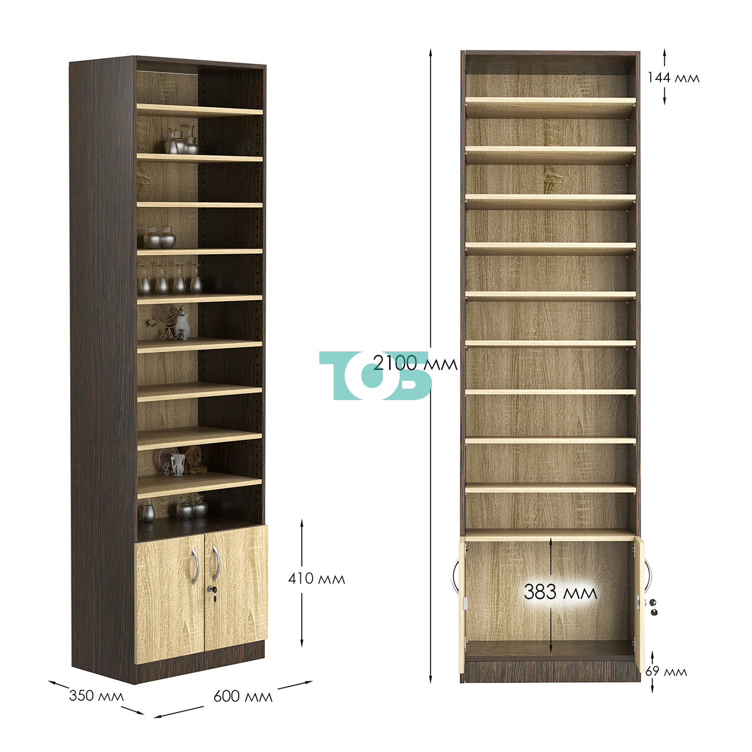 - нижний отсек закрыт распашными дверками с врезным замком;