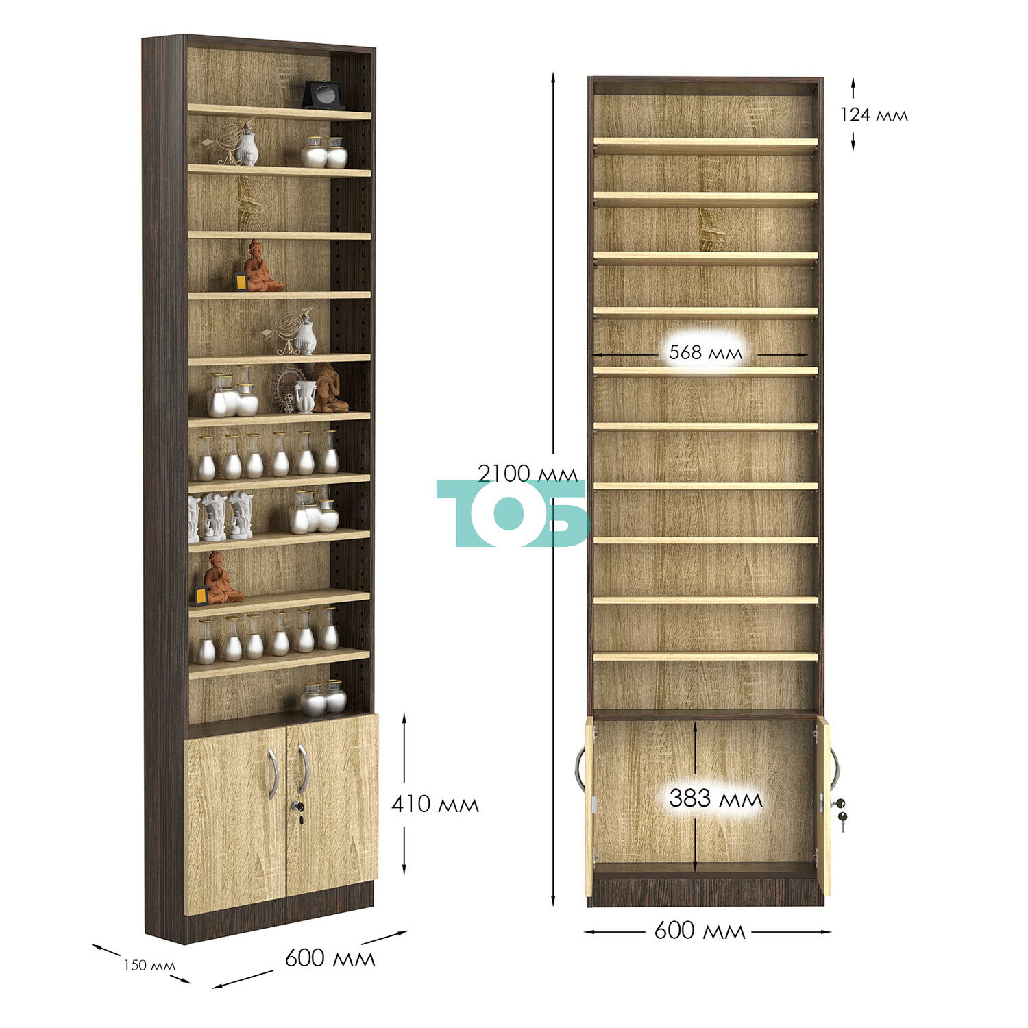 - нижний отсек закрыт распашными дверками с врезным замком;