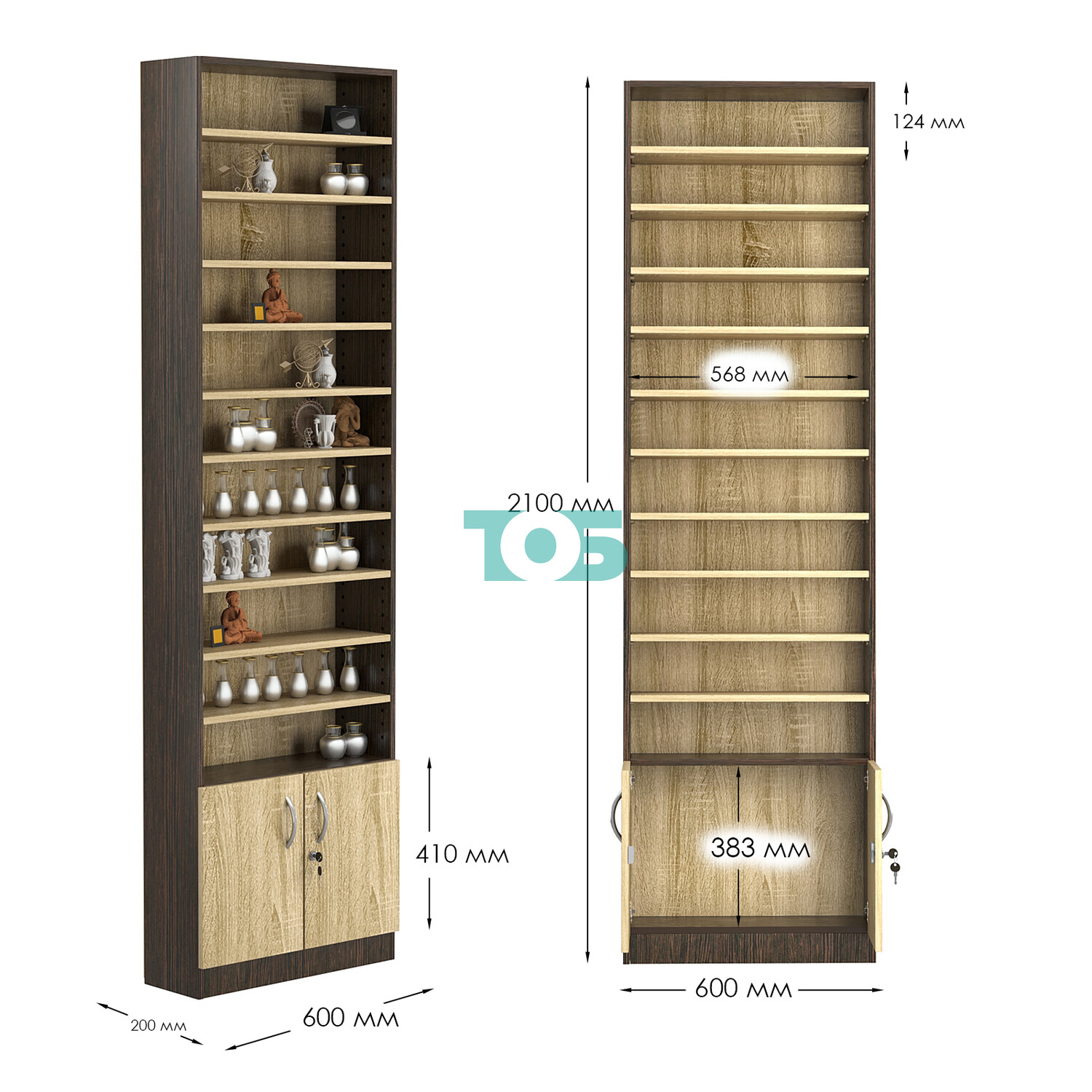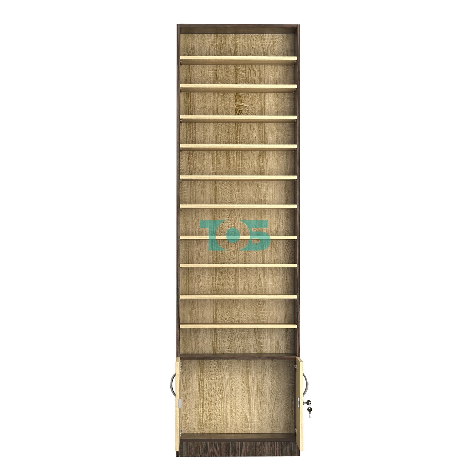 - нижний отсек закрыт распашными дверками с врезным замком;
