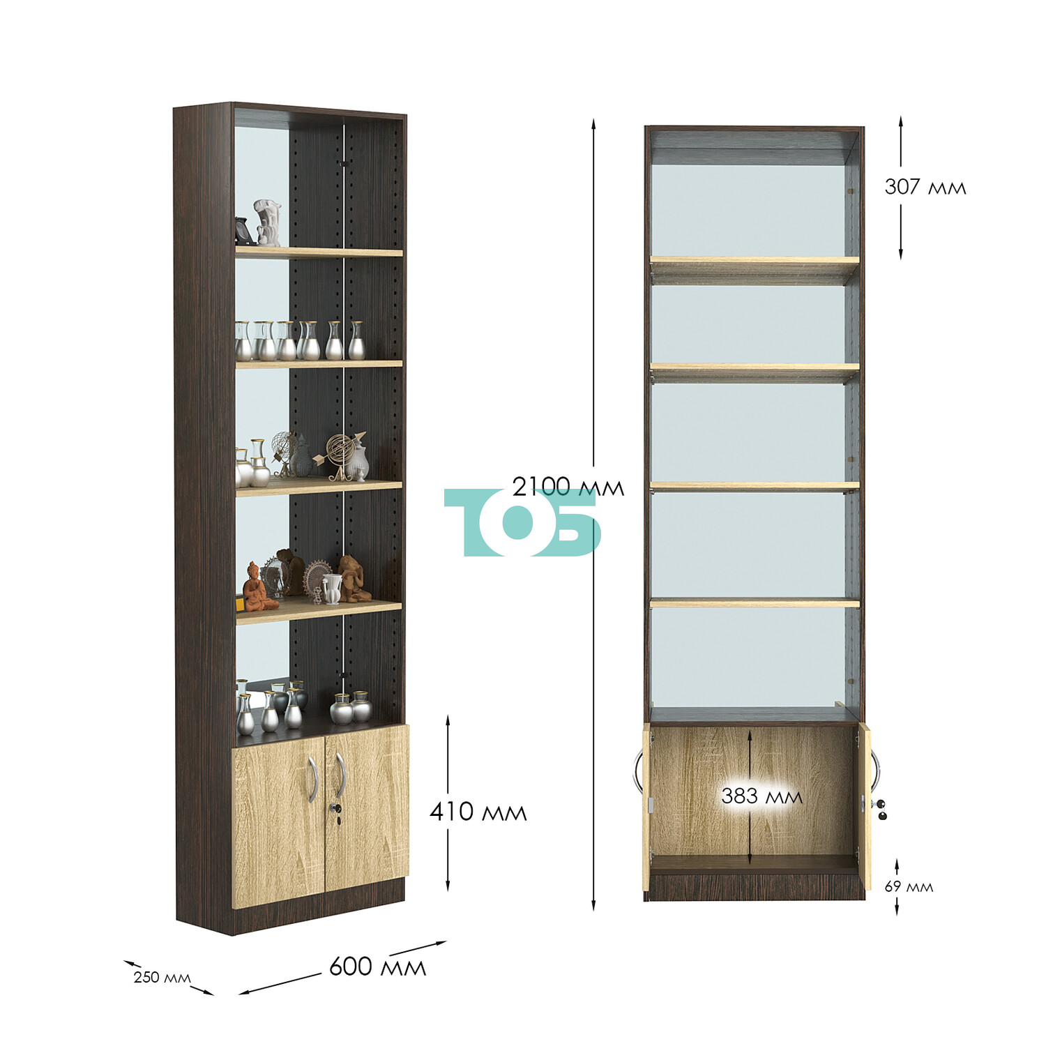 - нижний отсек закрыт распашными дверками с врезным замком (могут быть выполнены в разных цветах);