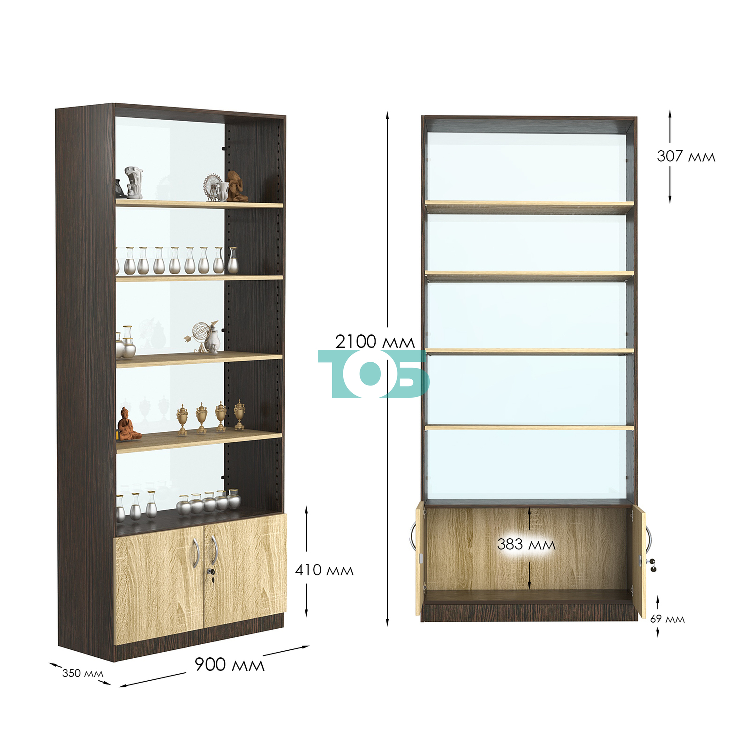 - нижний отсек закрыт распашными дверками с врезным замком (могут быть выполнены в разных цветах);
