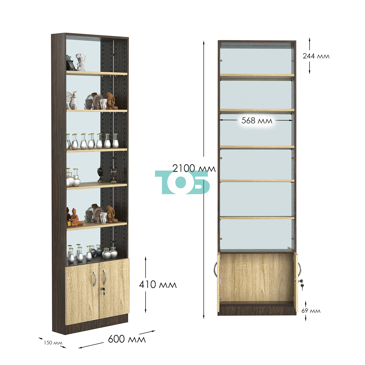 - нижний отсек закрыт распашными дверками с врезным замком;