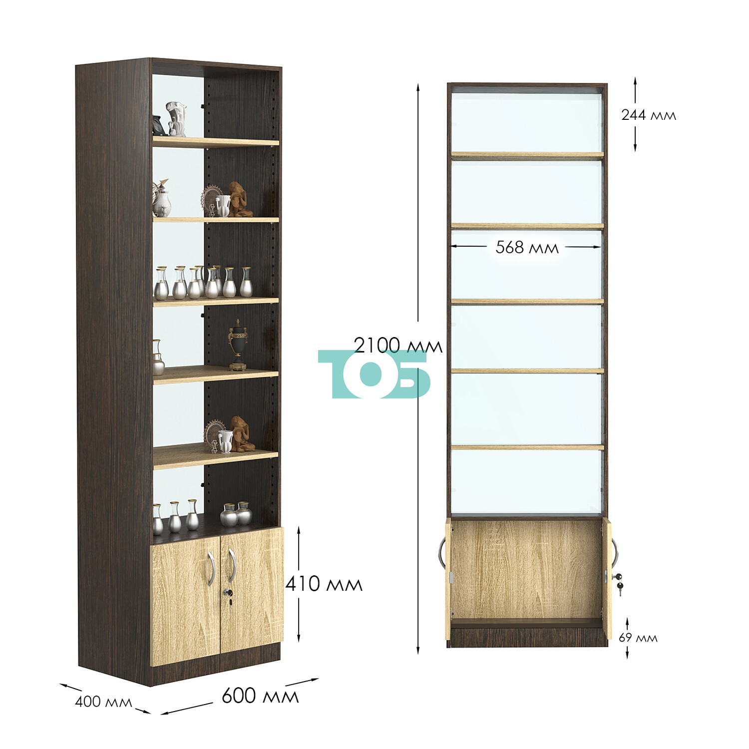 - нижний отсек закрыт распашными дверками с врезным замком;