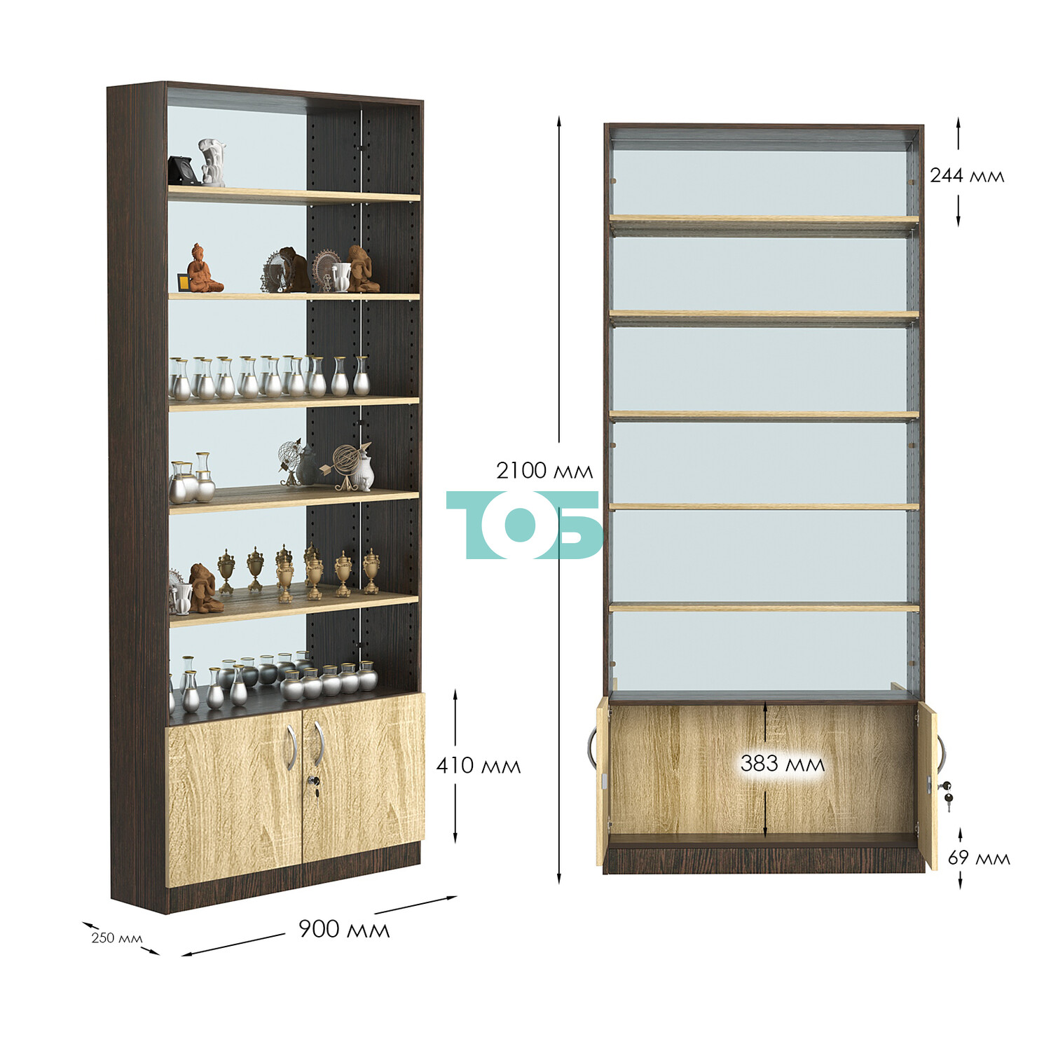 - нижний отсек закрыт распашными дверками с врезным замком;