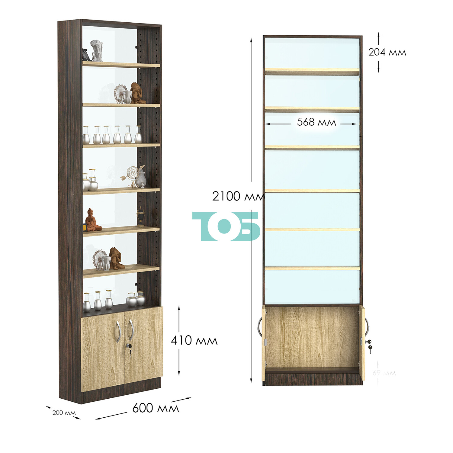 - нижний отсек закрыт распашными дверками с врезным замком;