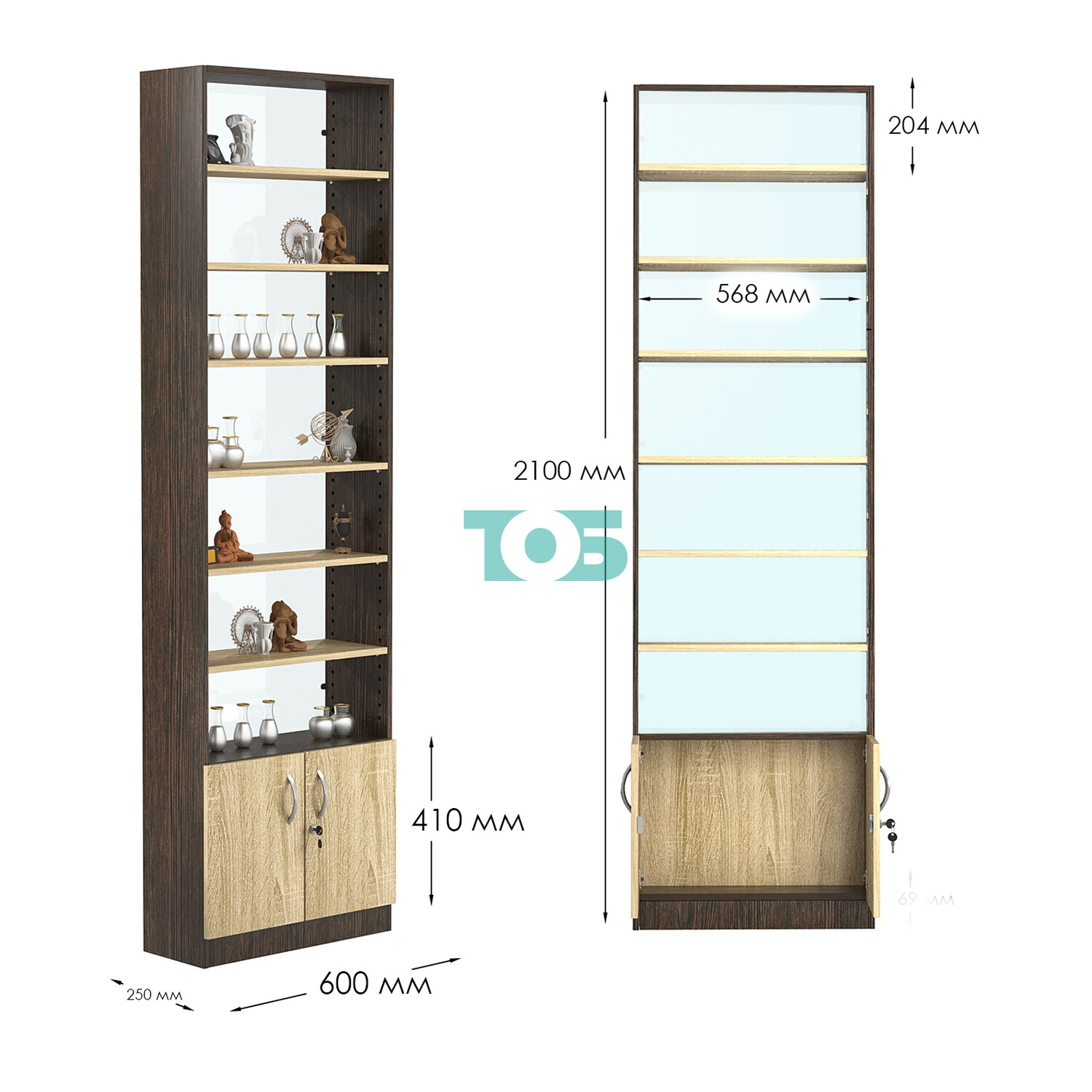 - нижний отсек закрыт распашными дверками с врезным замком;