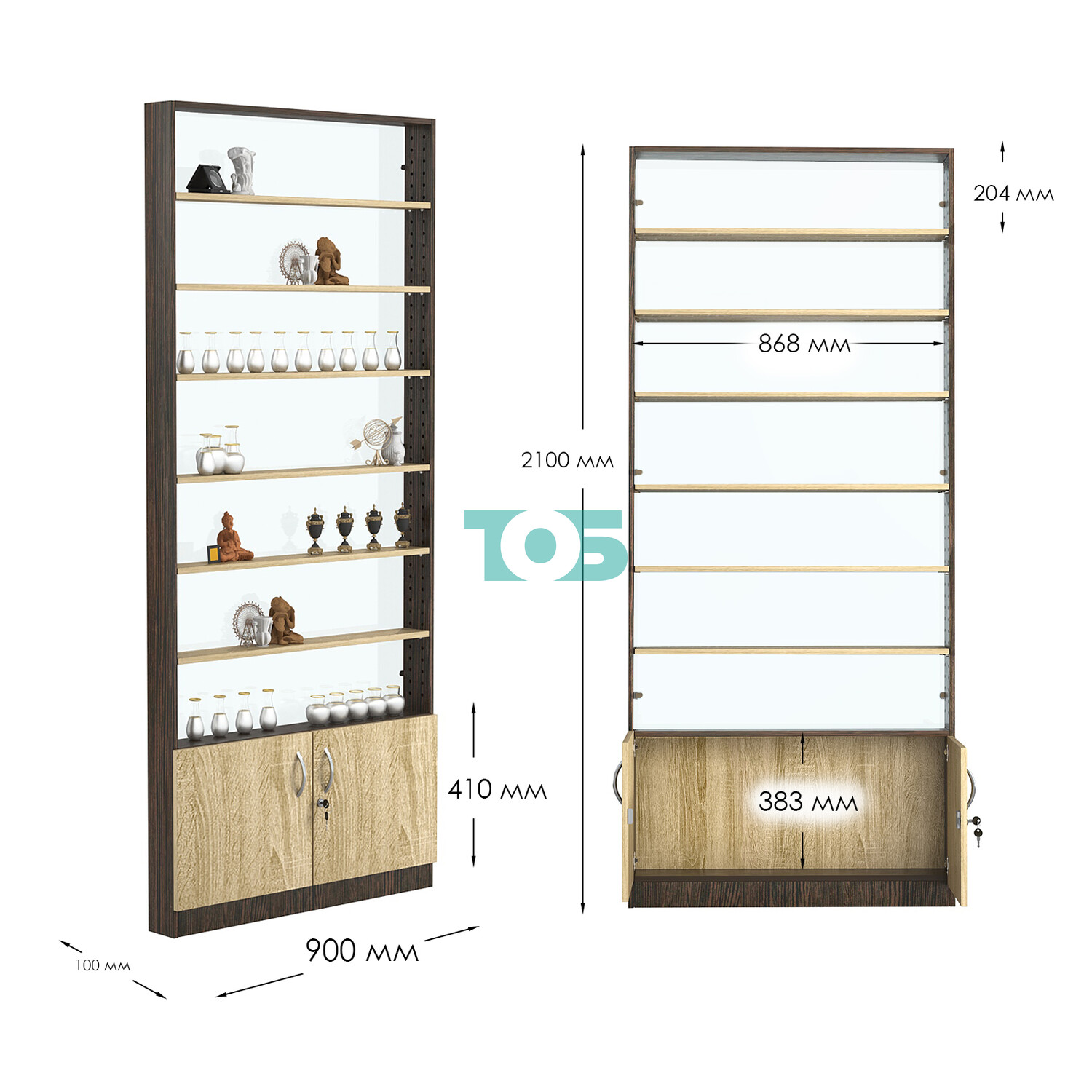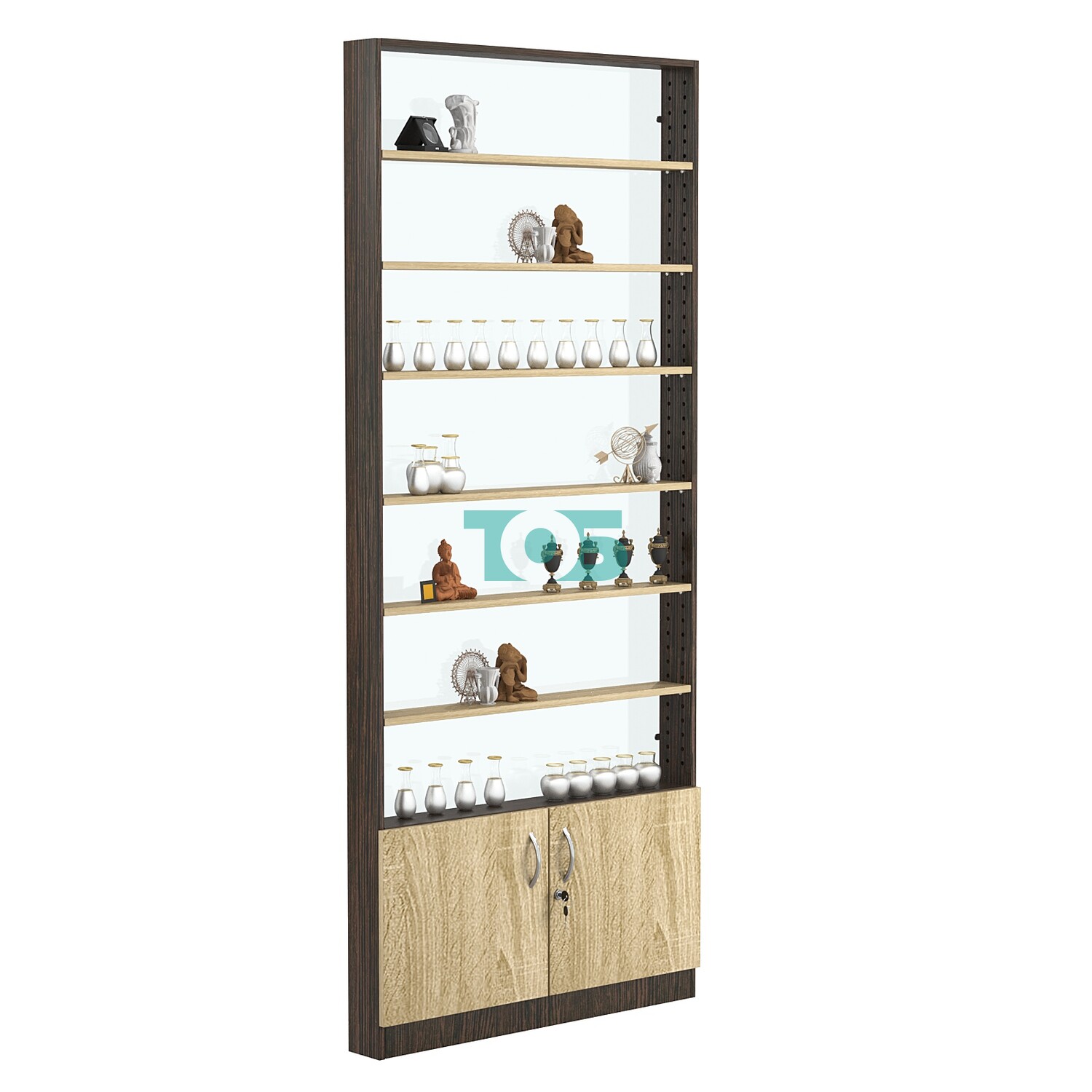 - нижний отсек закрыт распашными дверками с врезным замком;