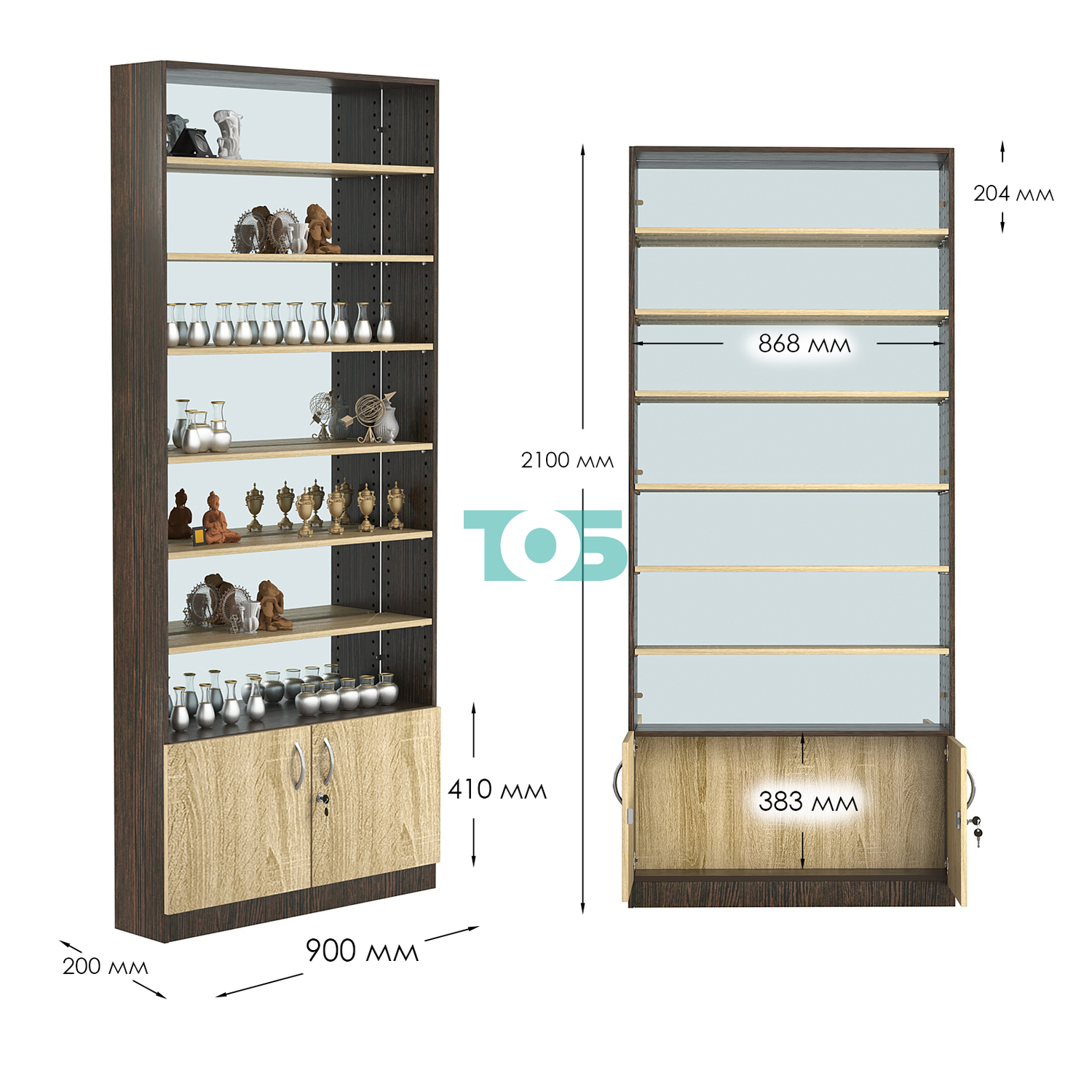 - нижний отсек закрыт распашными дверками с врезным замком;