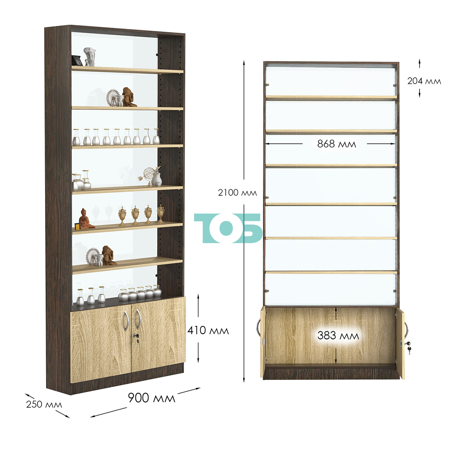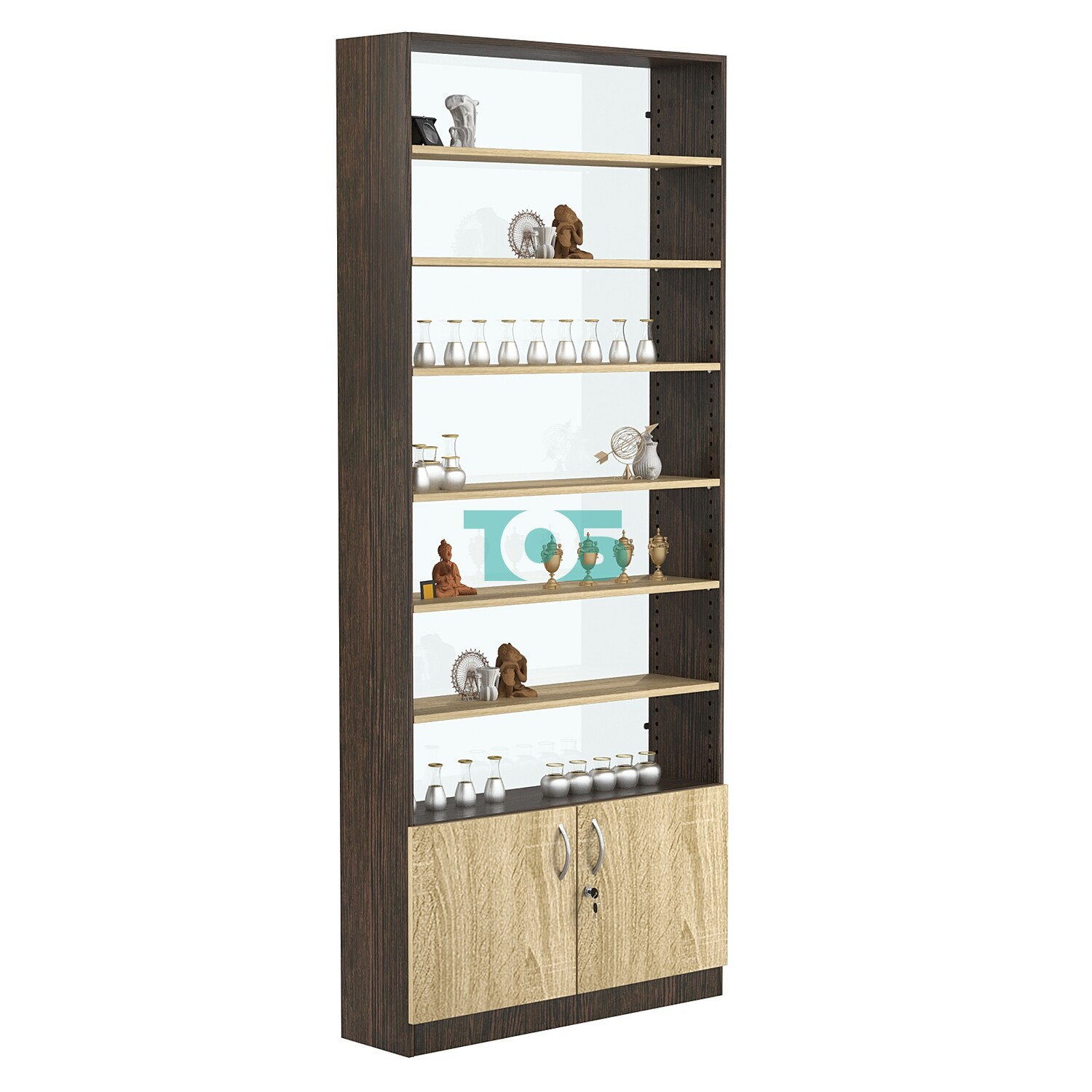 - нижний отсек закрыт распашными дверками с врезным замком;