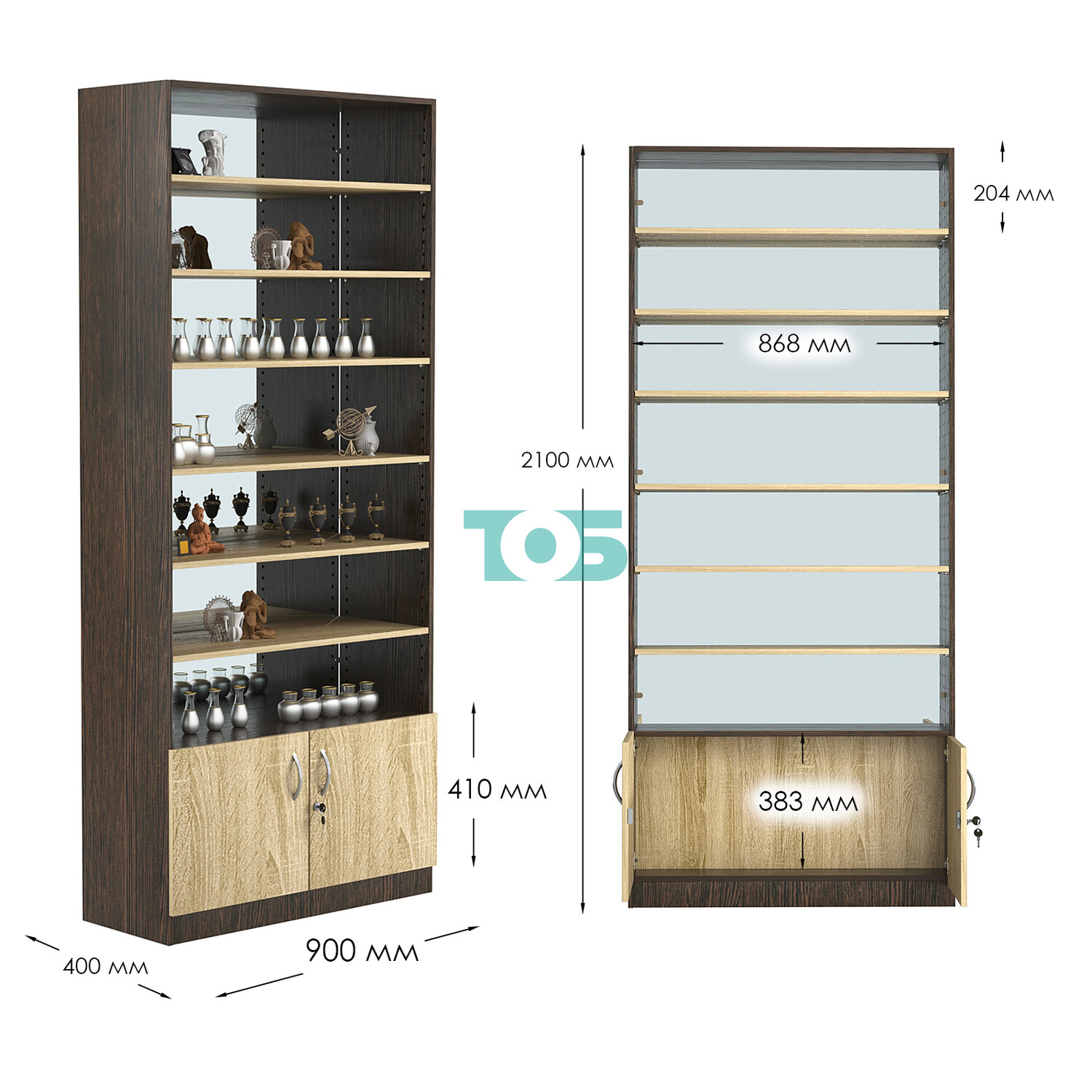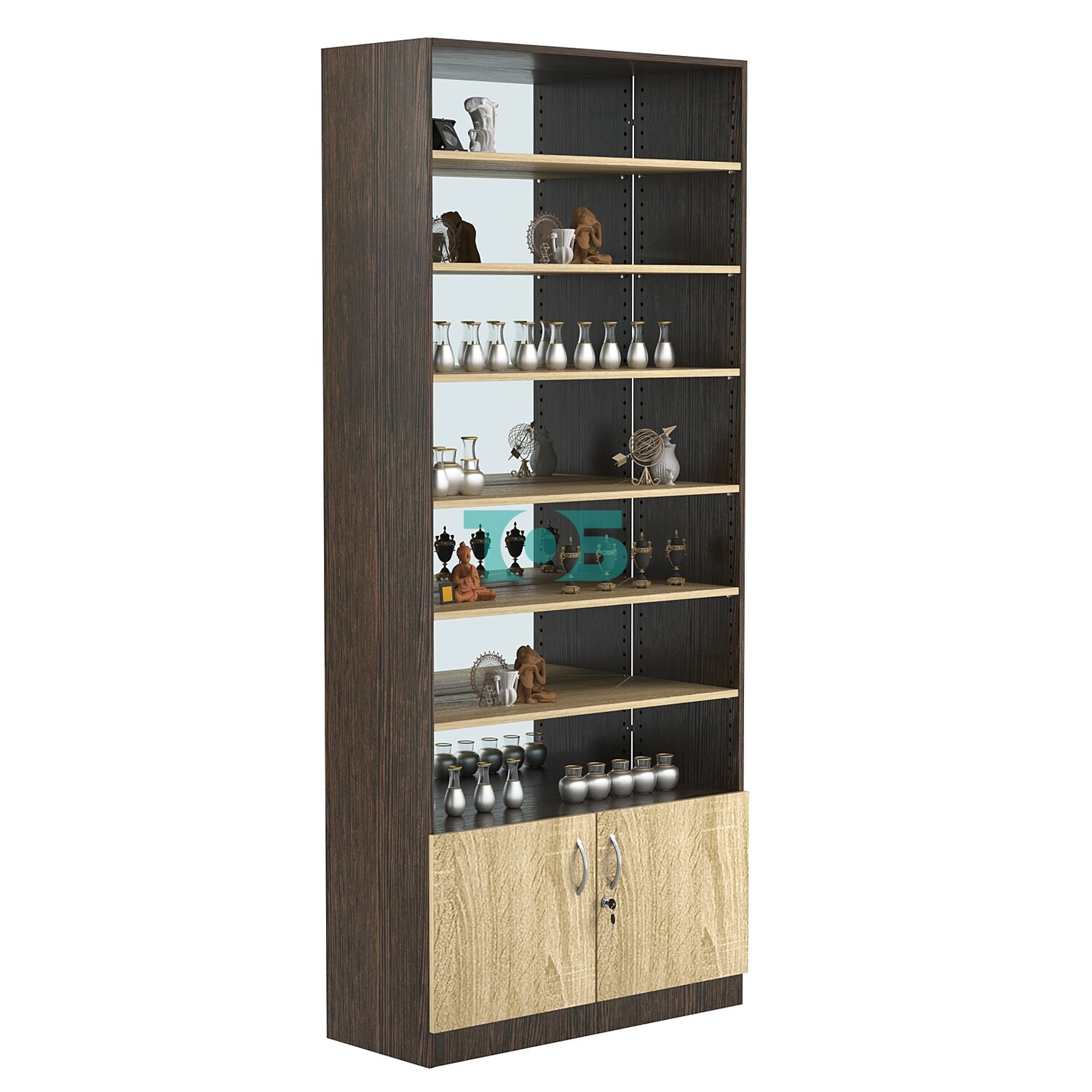 - нижний отсек закрыт распашными дверками с врезным замком;