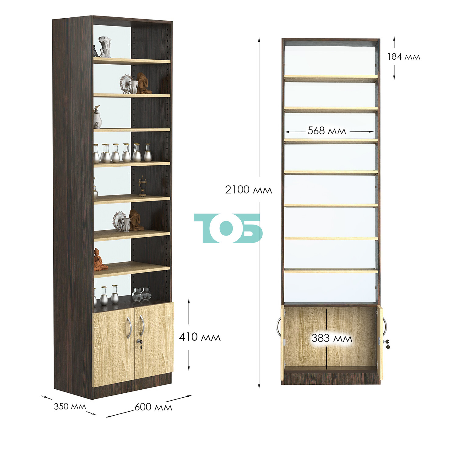 - нижний отсек закрыт распашными дверками с врезным замком;