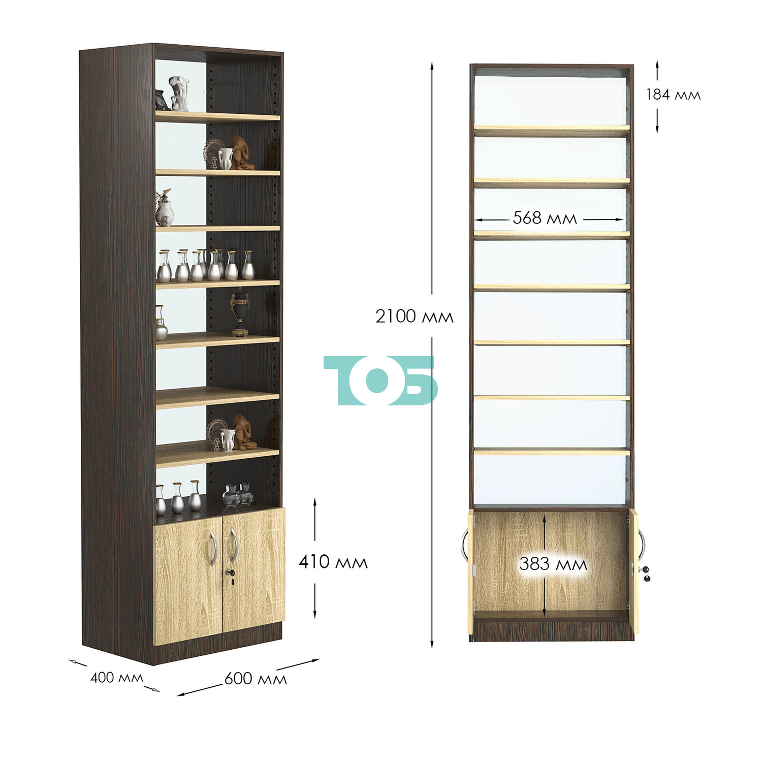 - нижний отсек закрыт распашными дверками с врезным замком;