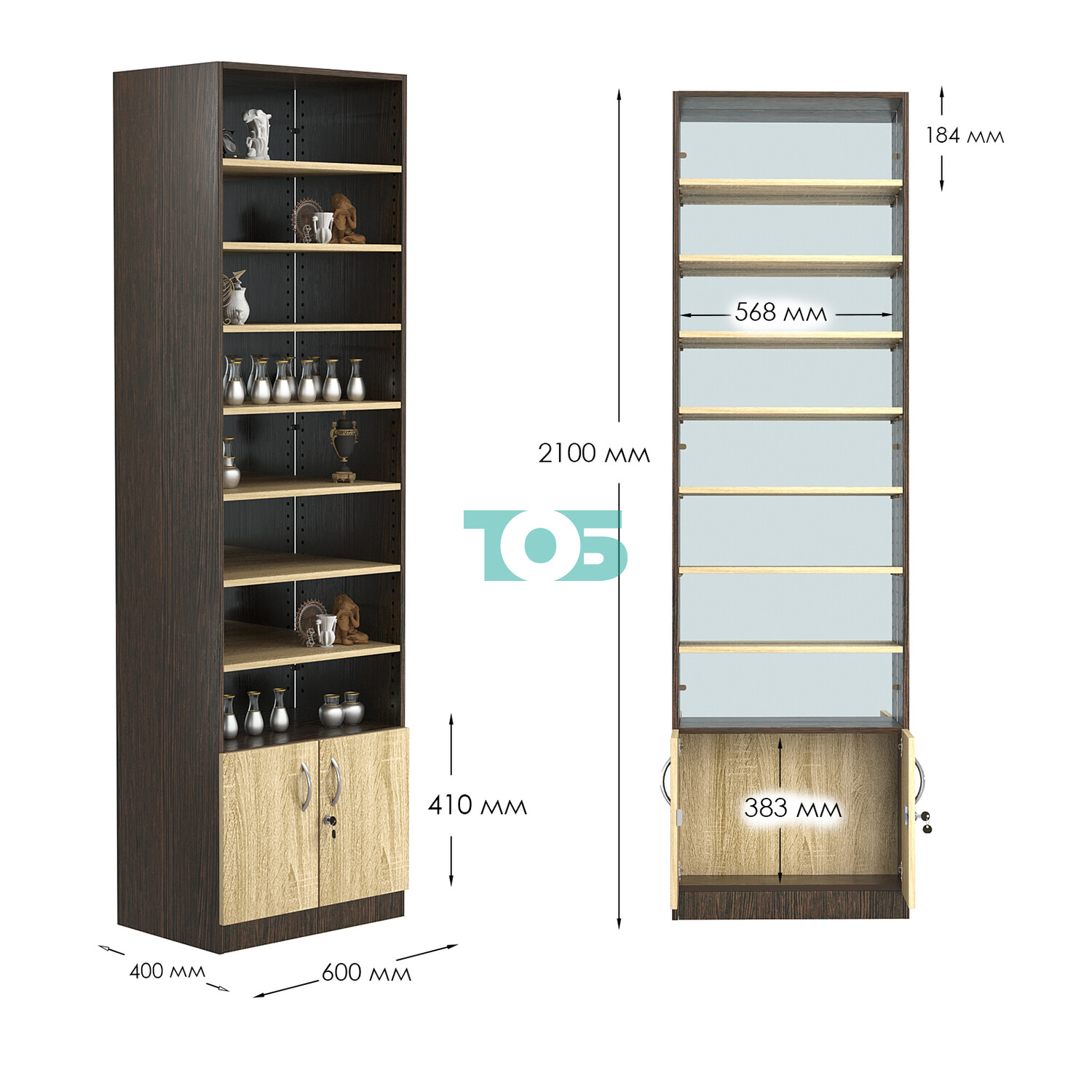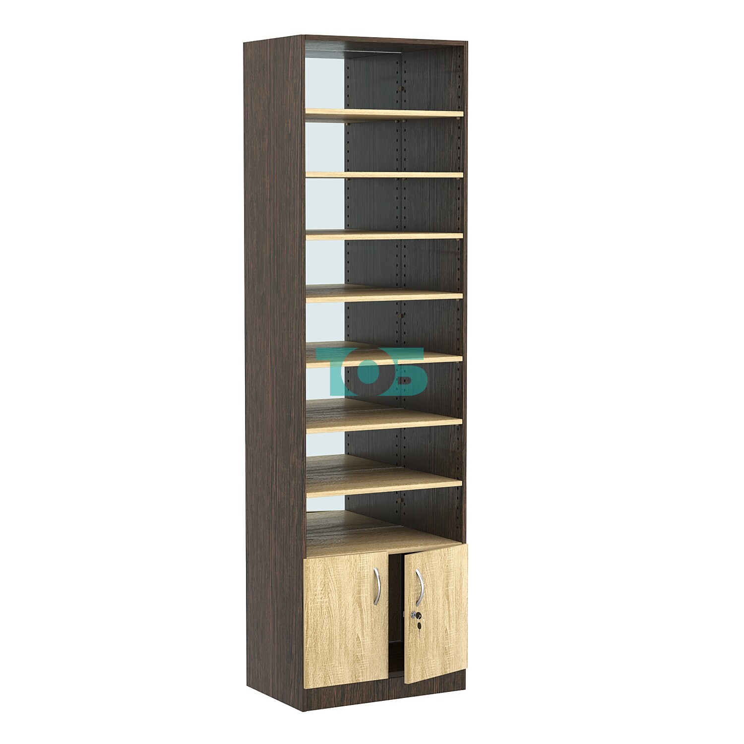 - нижний отсек закрыт распашными дверками с врезным замком;