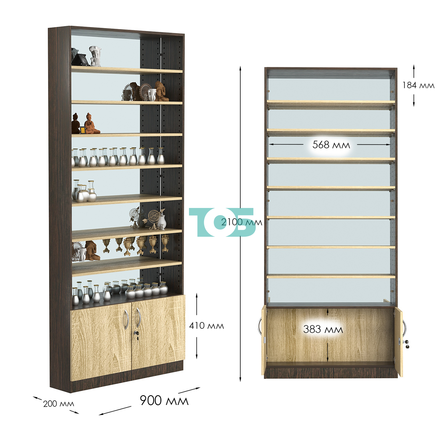 - любую полку можно регулировать по высоте с шагом 20мм;