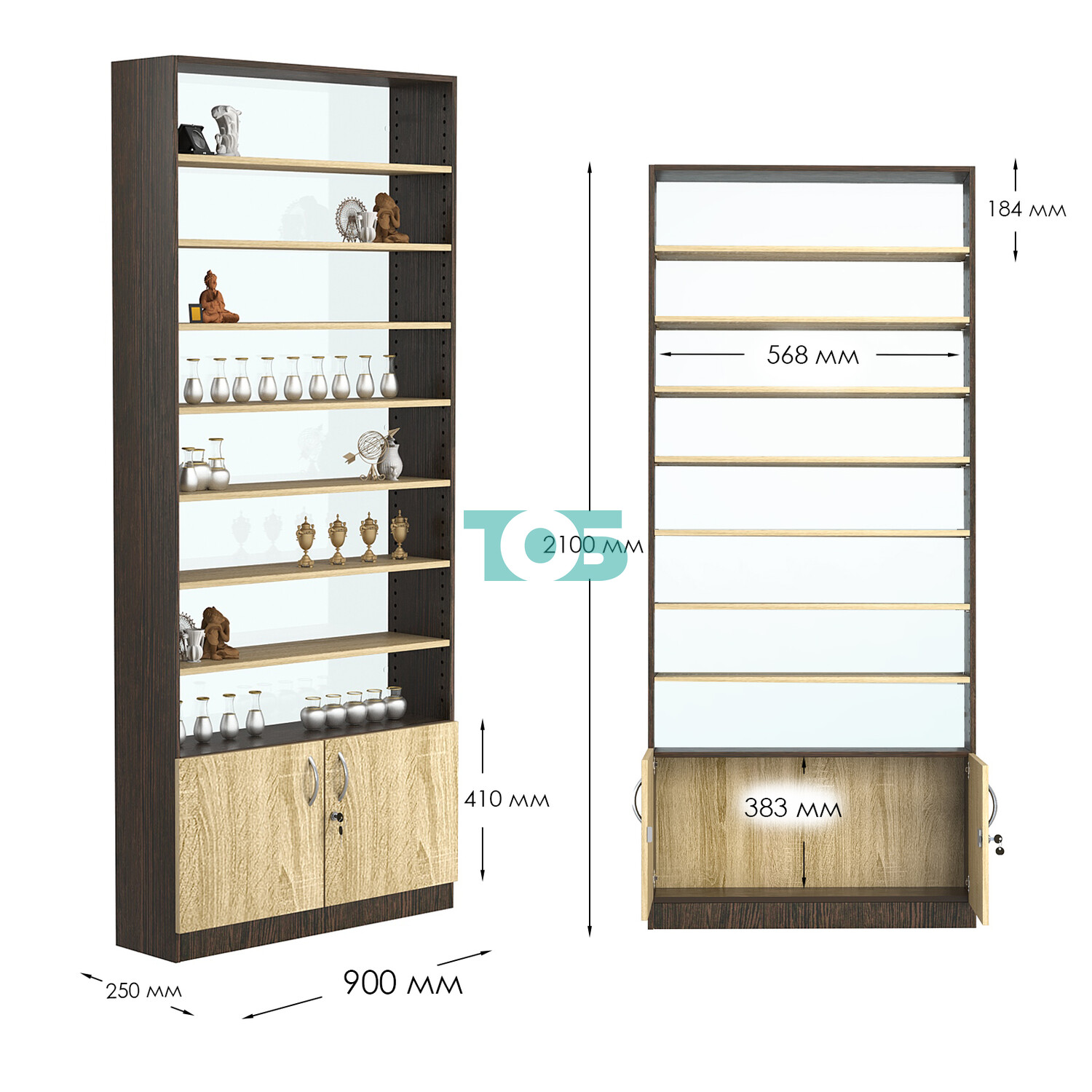 - нижний отсек закрыт распашными дверками с врезным замком;