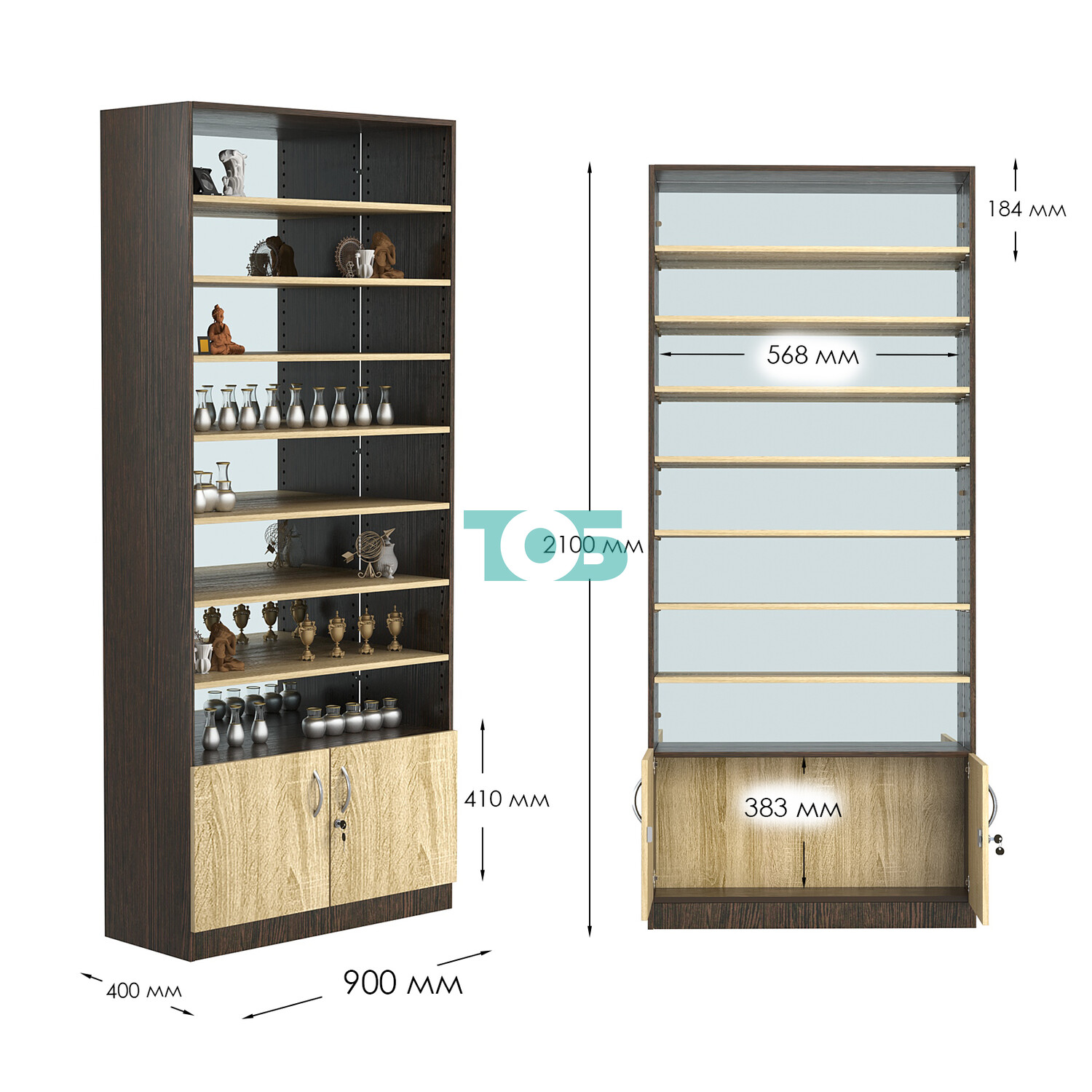 - нижний отсек закрыт распашными дверками с врезным замком;