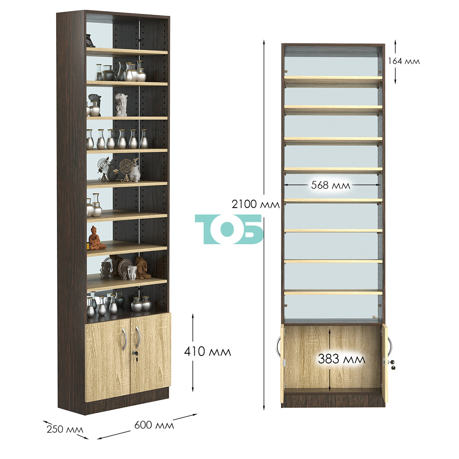 - любую полку можно регулировать по высоте с шагом 20мм;