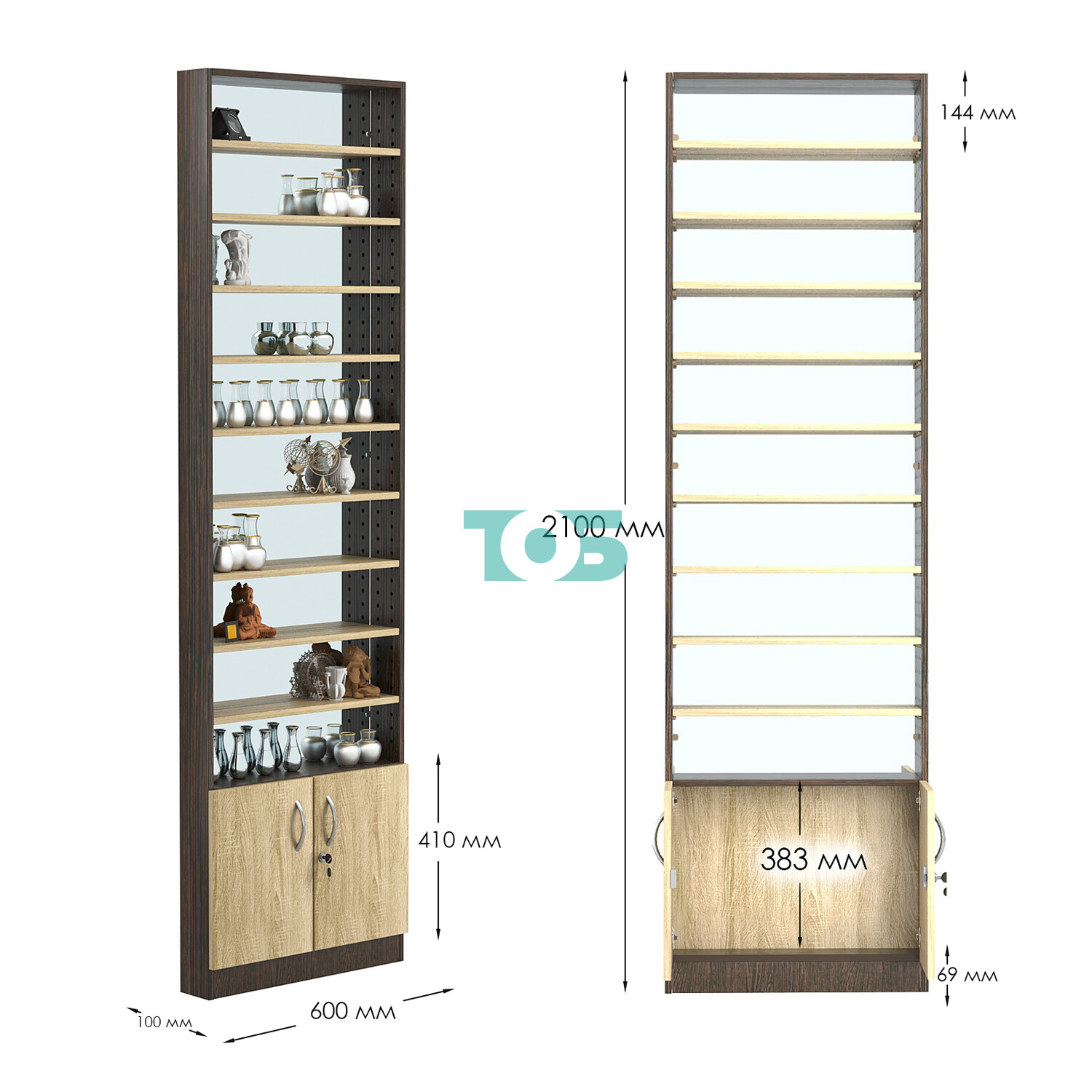 - нижний отсек закрыт распашными дверками с врезным замком;