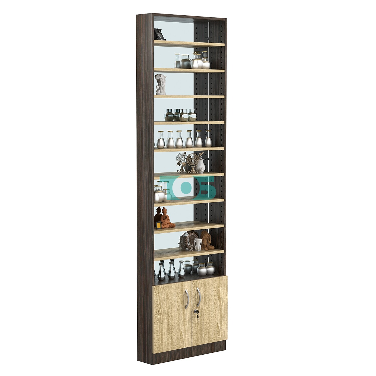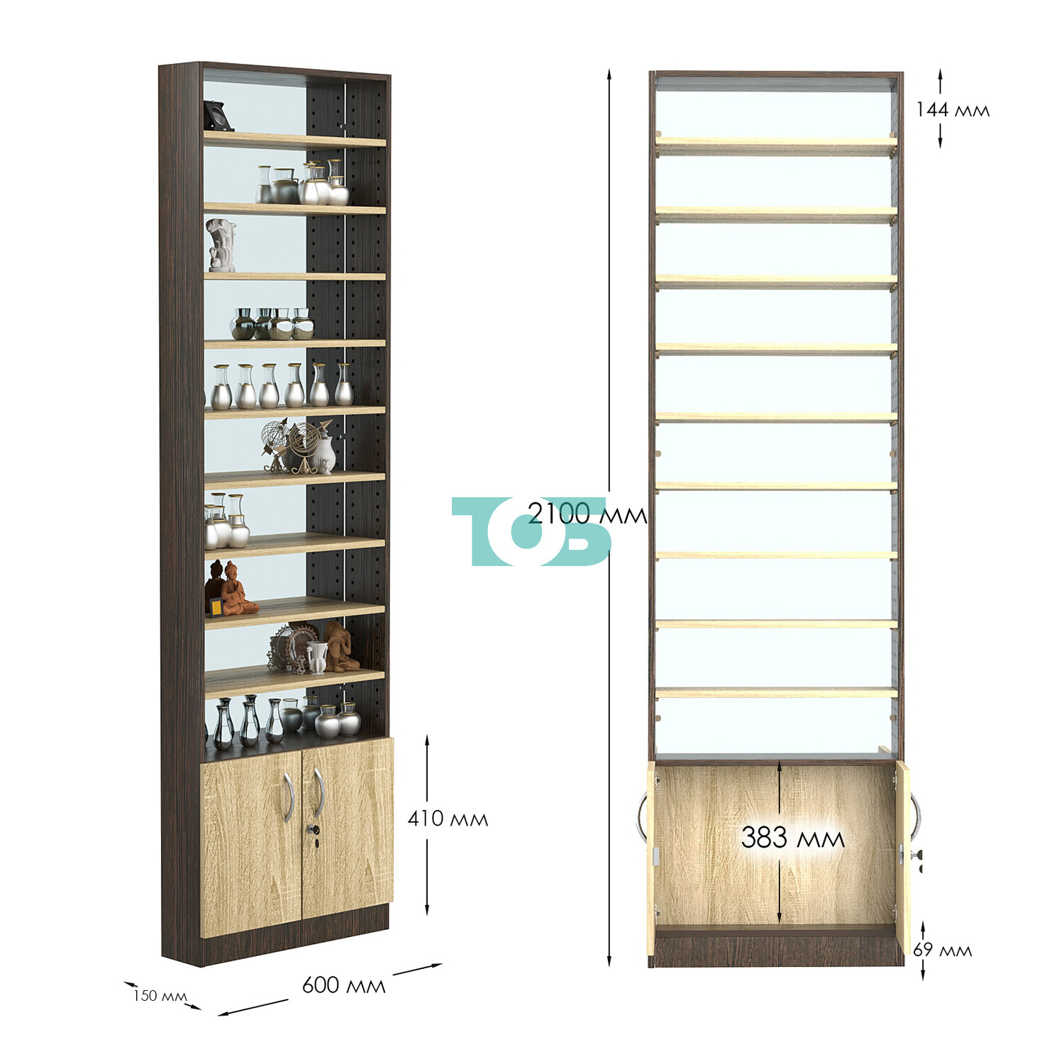 - нижний отсек закрыт распашными дверками с врезным замком;