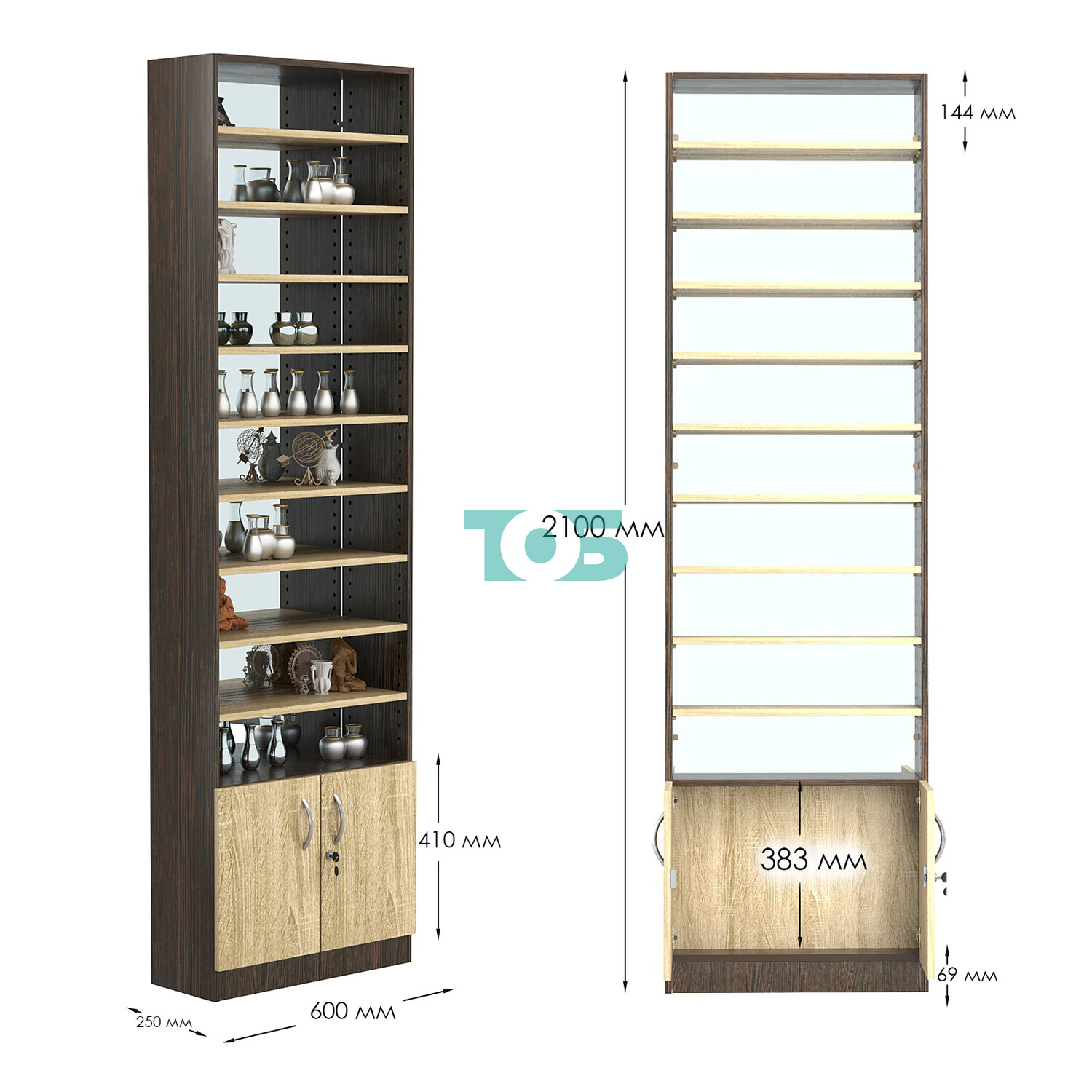 - нижний отсек закрыт распашными дверками с врезным замком;