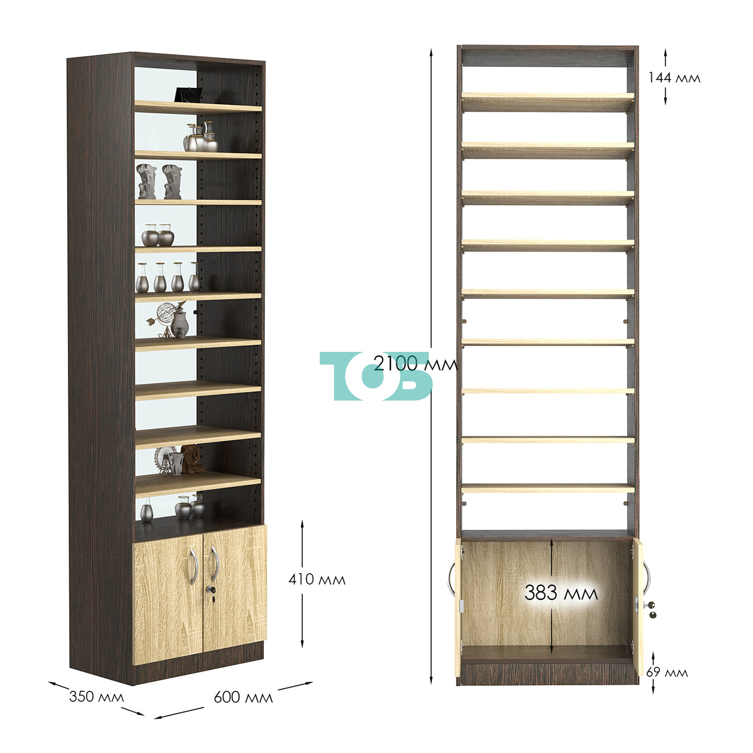 - нижний отсек закрыт распашными дверками с врезным замком;