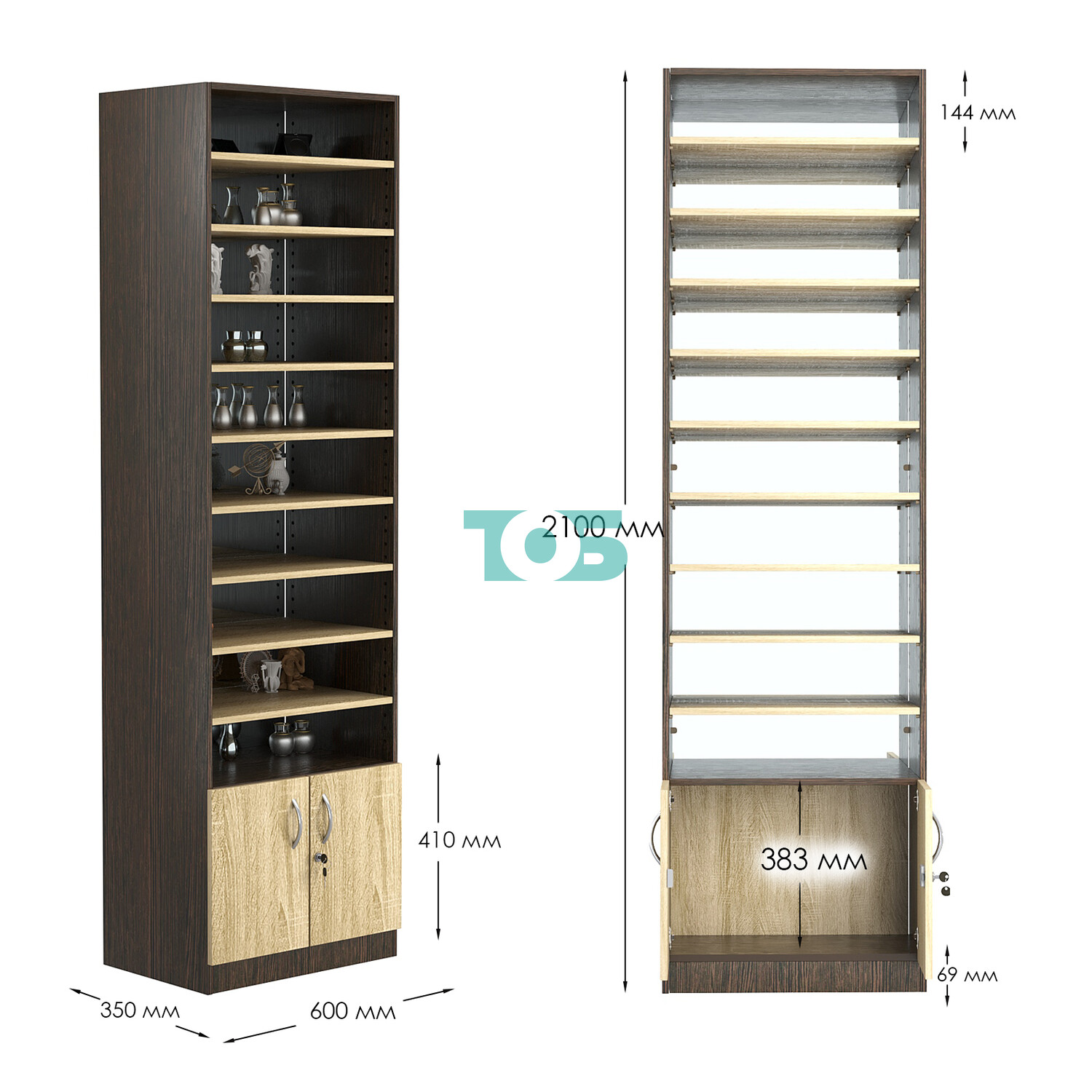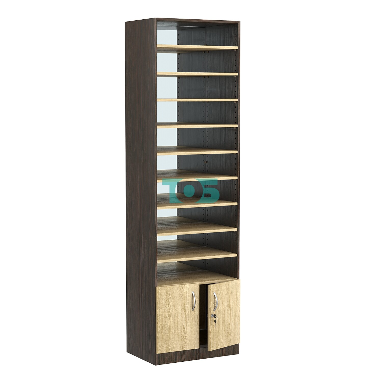 - нижний отсек закрыт распашными дверками с врезным замком;
