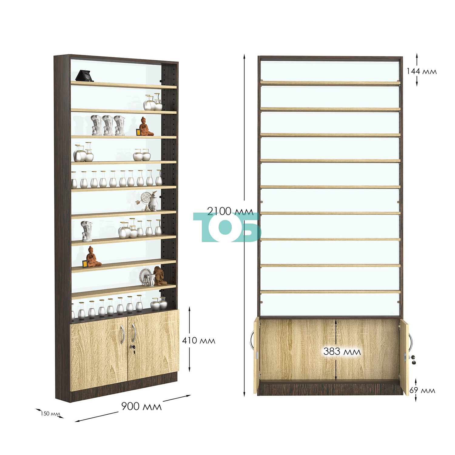 Отличия модели стеллажа из ДСП с 9-ю полками 150x900 мм серии LEVEL-9 №9-1 (З/C - СТЕКЛО):