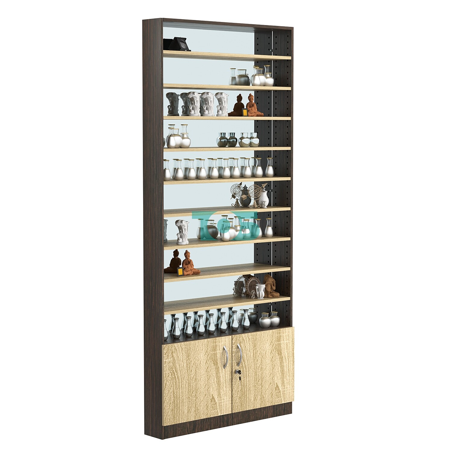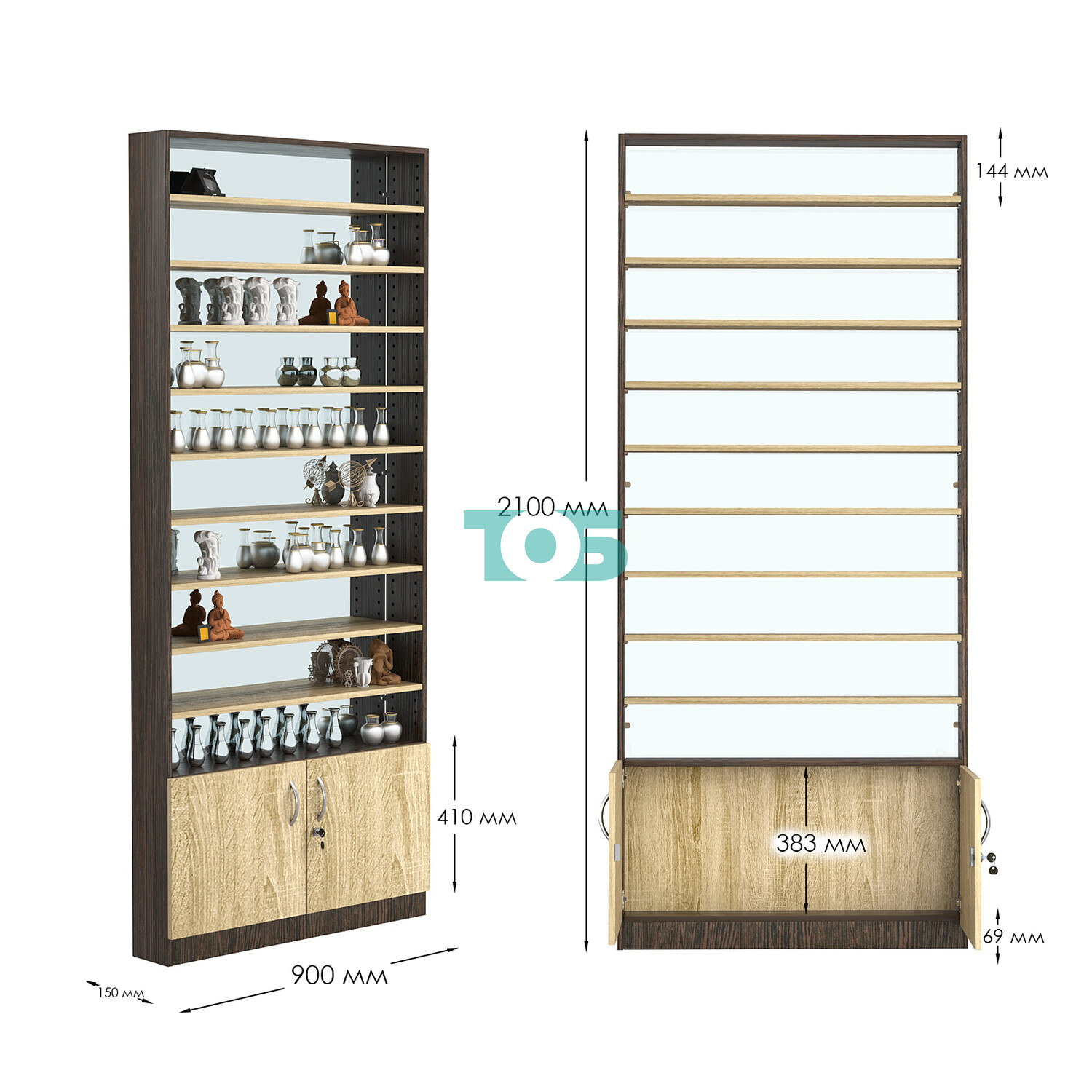 - нижний отсек закрыт распашными дверками с врезным замком;