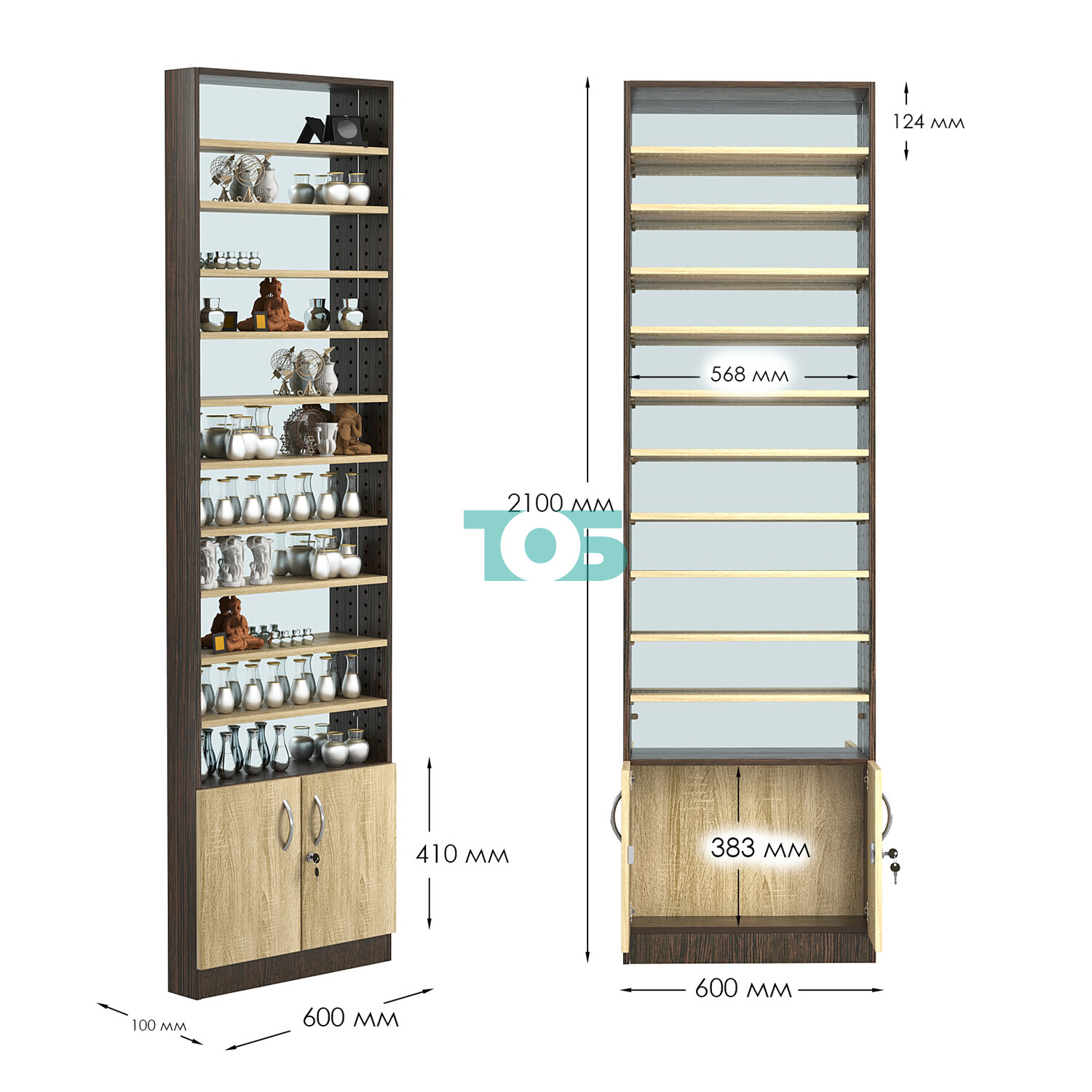 - нижний отсек закрыт распашными дверками с врезным замком;