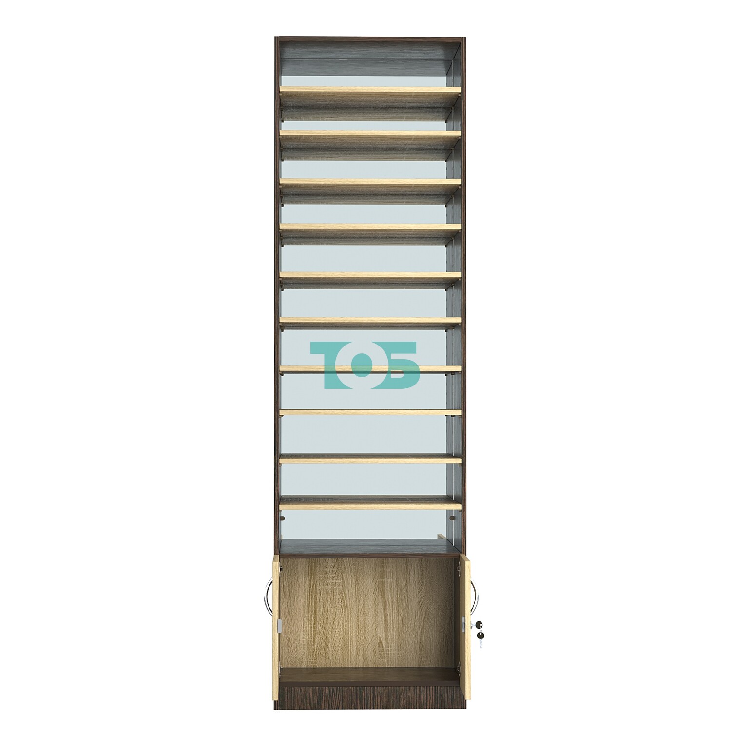 - нижний отсек закрыт распашными дверками с врезным замком;