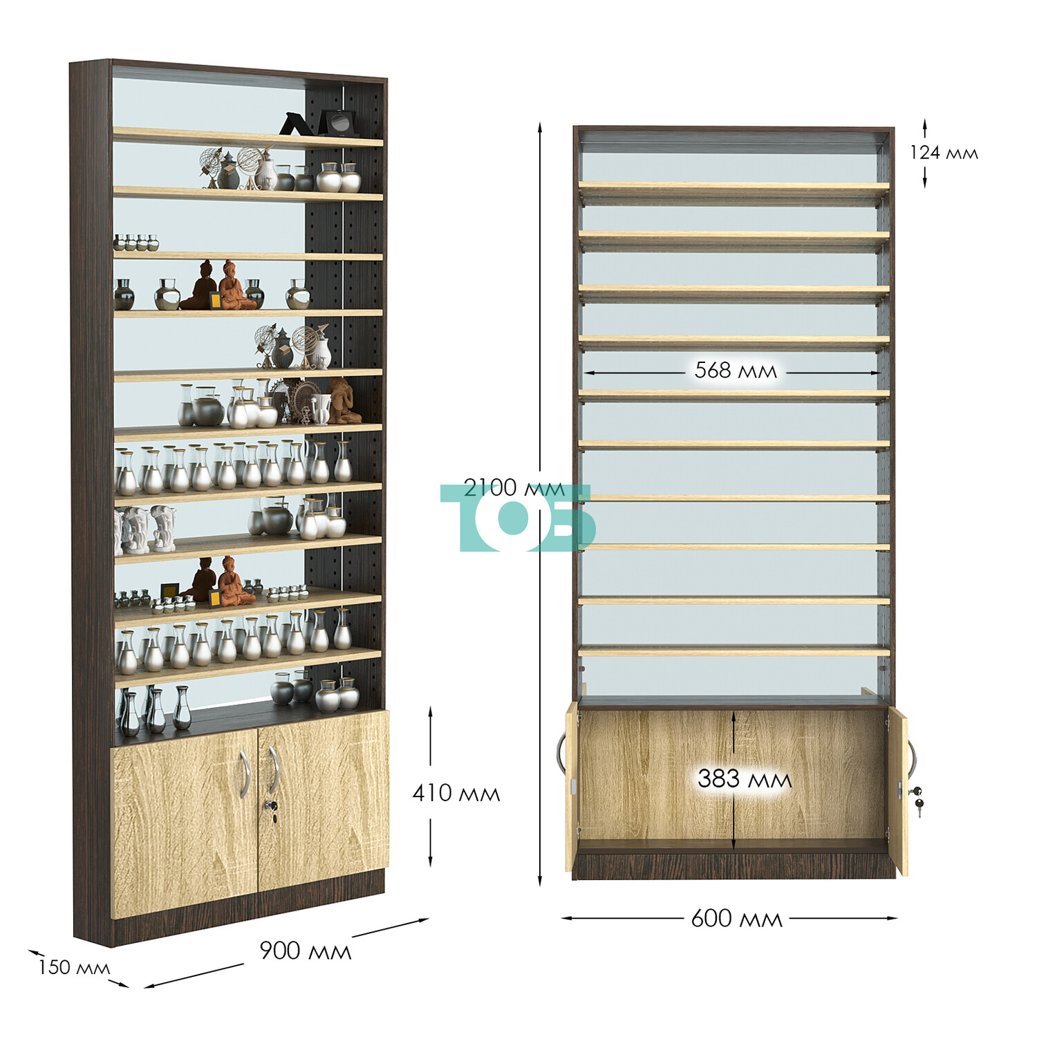 Отличия модели стеллажа из ДСП с 10-ю полками 150x900 мм серии LEVEL-10 №9-2 (З/C - зеркало):