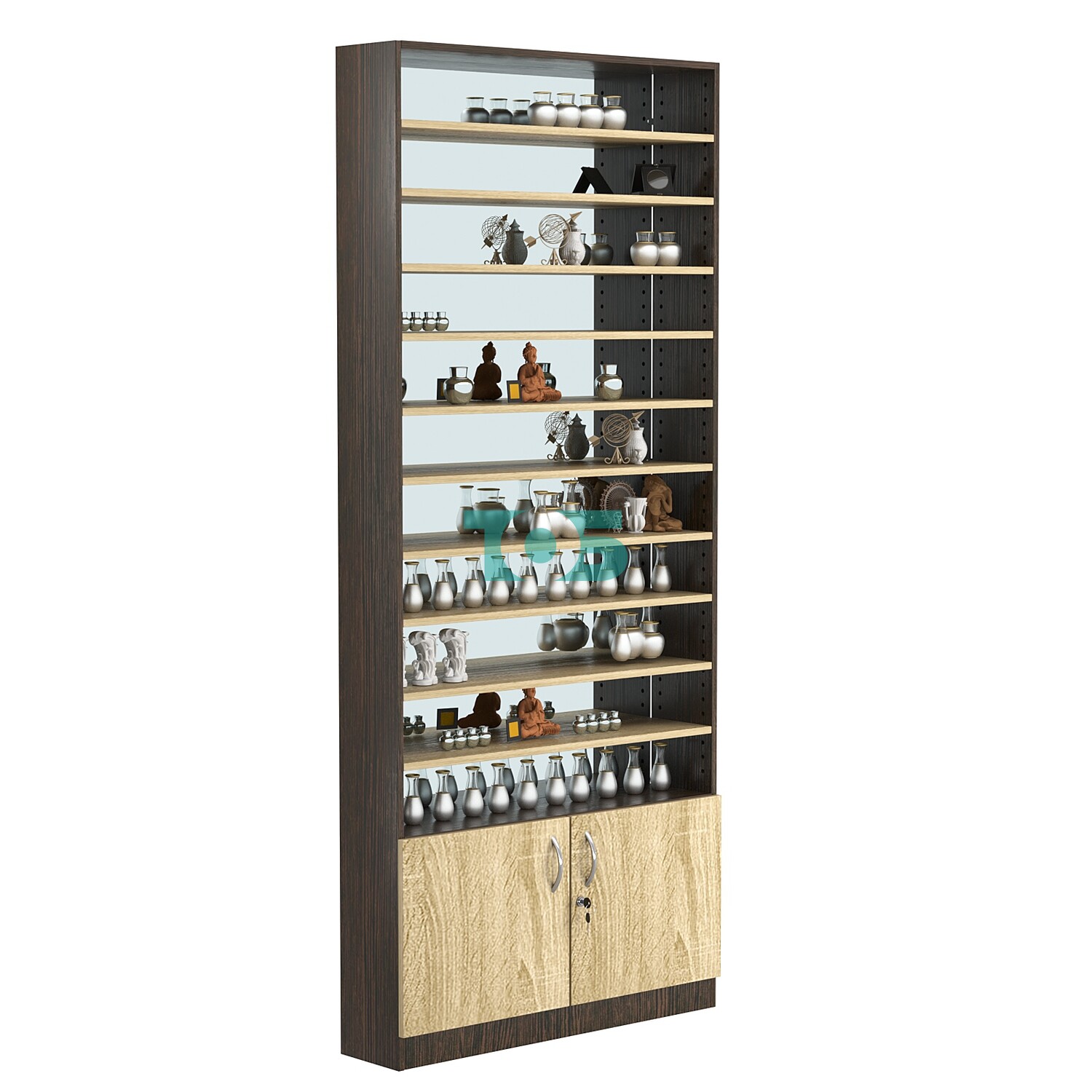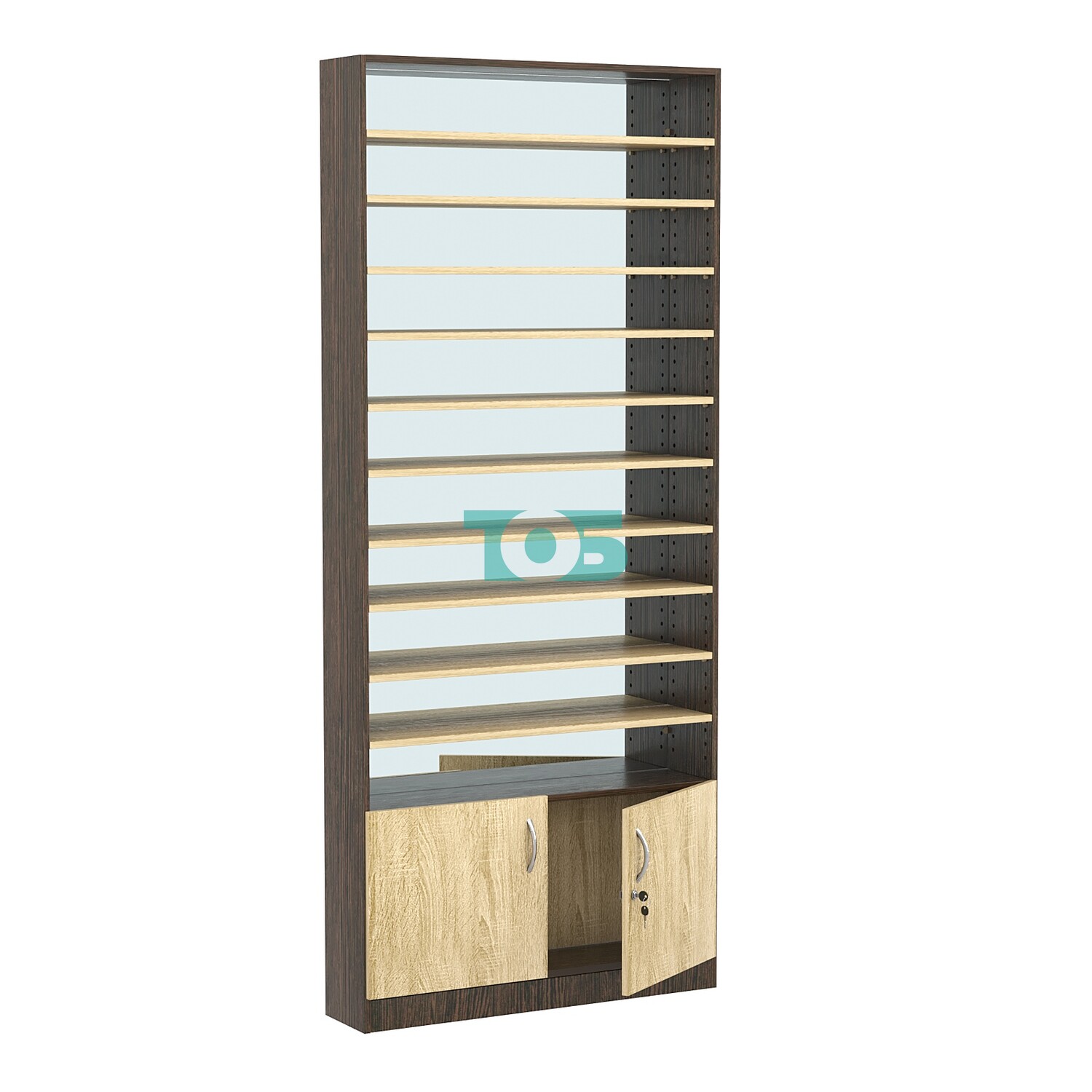 - нижний отсек закрыт распашными дверками с врезным замком;