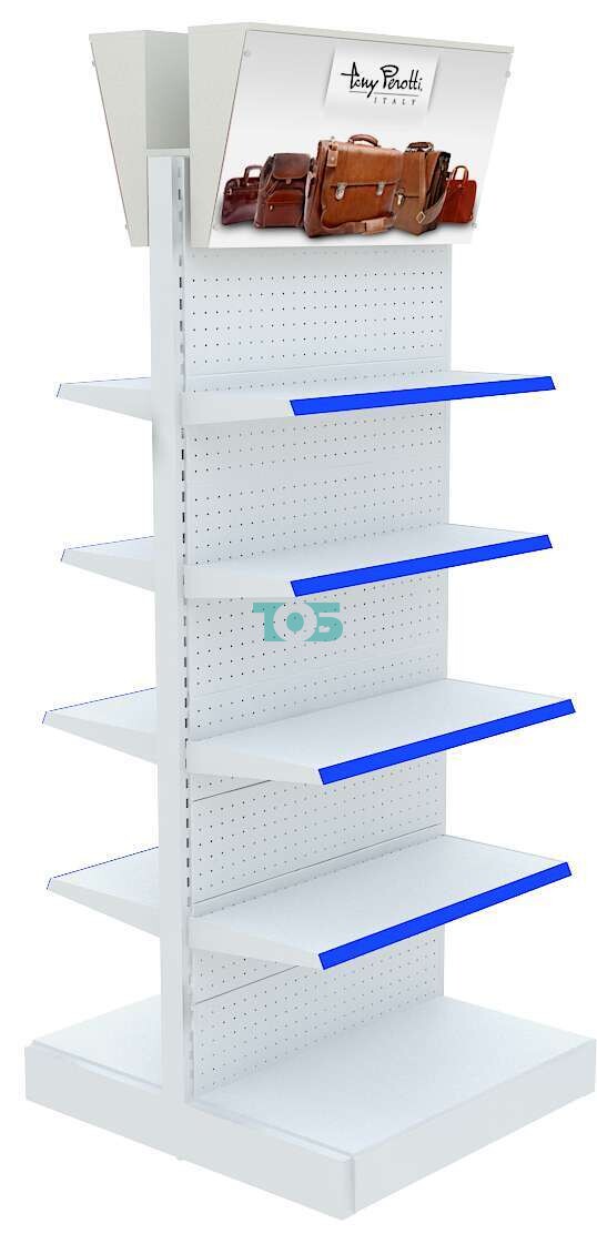 Отличия модели большого двустороннего стеллажа с металлическими полками и световыми коробами №4: