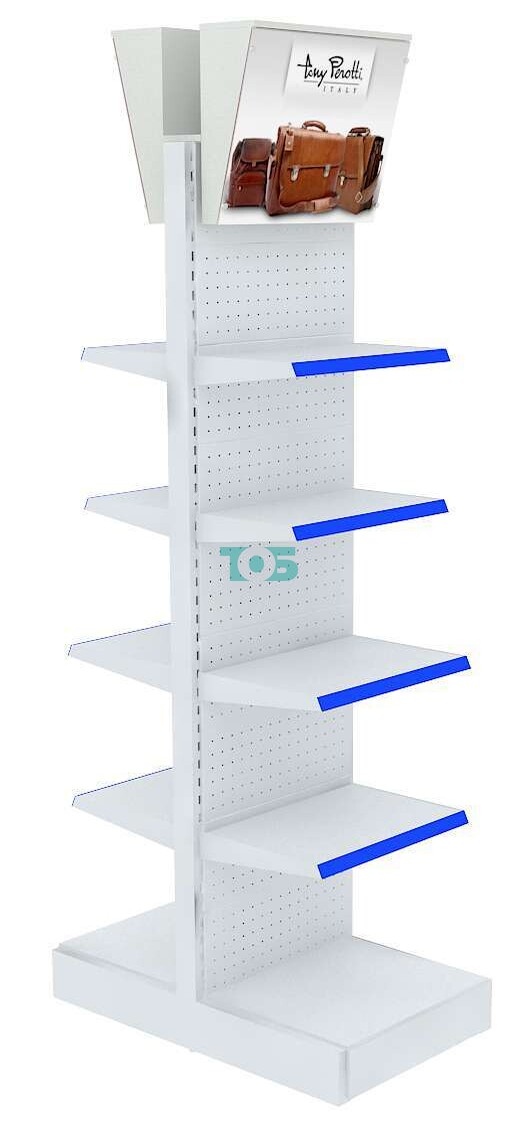 Отличия модели малого двустороннего стеллажа с металлическими полками и световыми коробами №5: