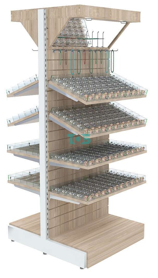 - стеллаж включает восемь полок из ДСП 25 мм с 50-ю ячейками из оргстекла на каждой для демонстрации Товара покупателю;