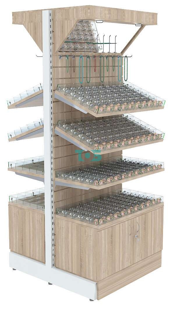 - стеллаж включает восемь полок из ДСП 25 мм с 50-ю ячейками из оргстекла на каждой для демонстрации Товара покупателю;