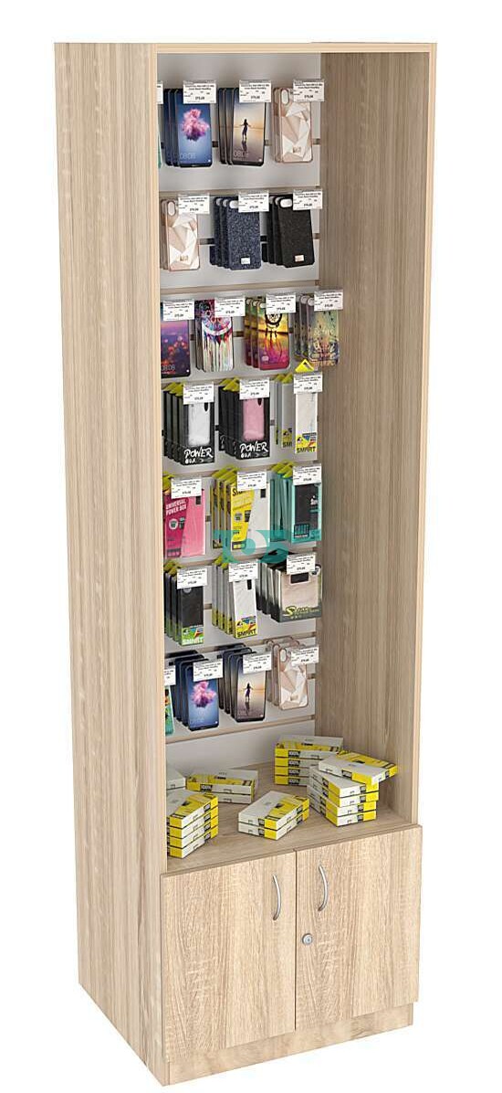 • Нижнее отделение: в нижней части витрины расположена распашная дверь с замком, что позволяет организовать хранение товаров и обеспечить их безопасность.