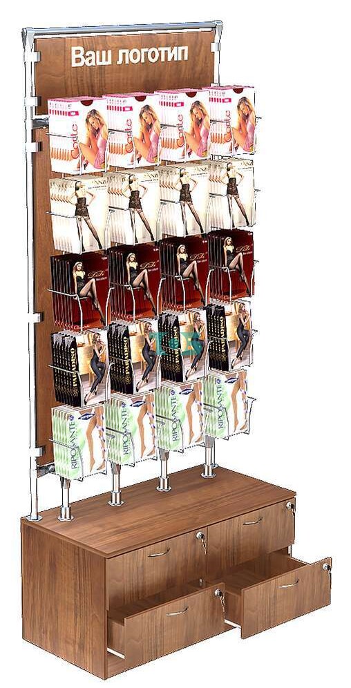Отличия модели пристенной односторонней витрины для продажи колгот №ВДПК-Т19-Д12 З/С-ДСП: