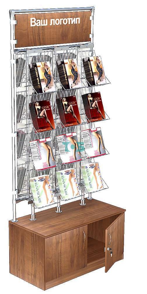 Торговая выставочная витрина с местом где размещается логотип для продажи колгот №ВДПК-Т19-Д04 З/С-Зеркало