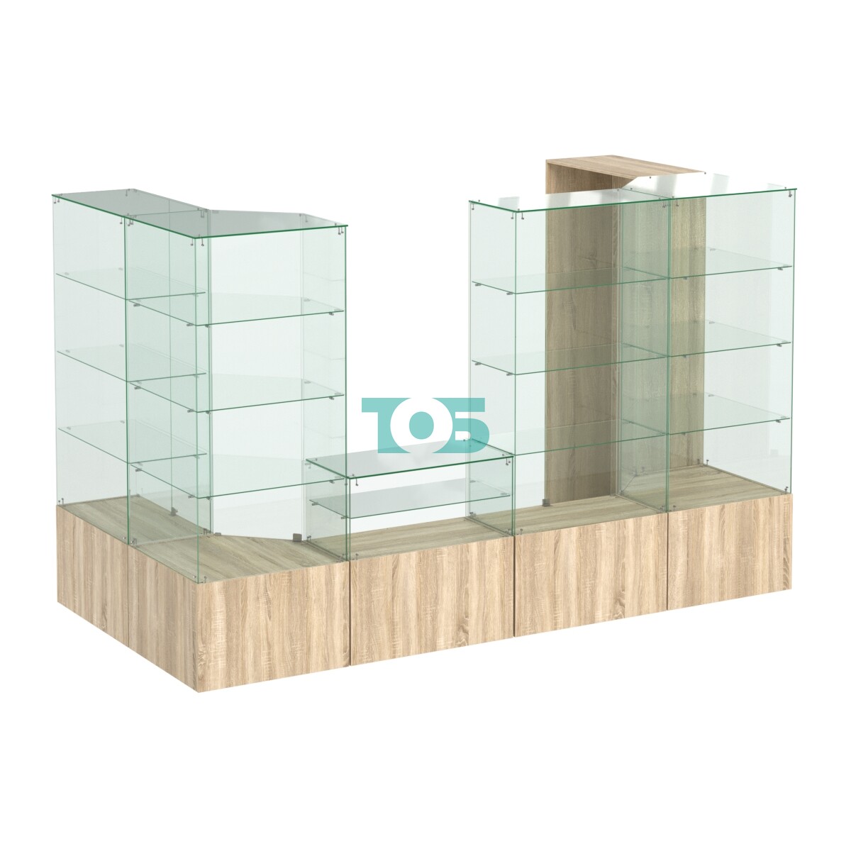 Высота стеклянных витрин: 2020 мм, что позволяет эффективно демонстрировать товары.