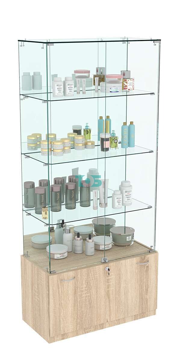 Задняя стенка: зеркальная задняя стенка придаёт витрине стильный вид и создаёт визуальный эффект увеличения пространства, делая товары более заметными.