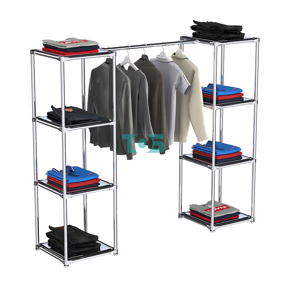 Персональная настройка: Возможность добавления необходимого количества полок, что позволяет адаптировать вешало под изменяющиеся требования.