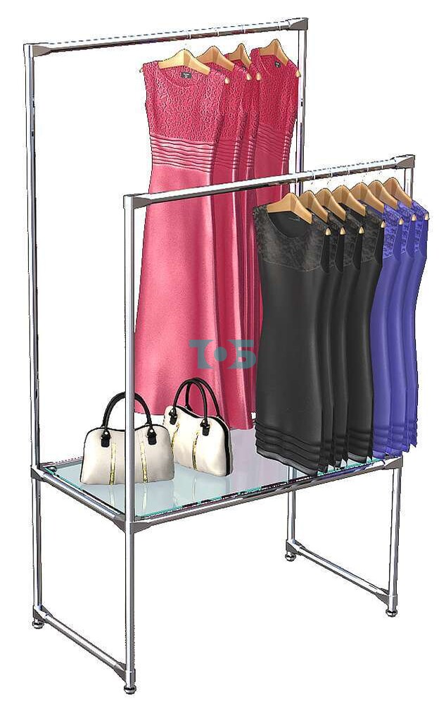 Вешало Прогресс №4-1 — это стильное и функциональное решение для магазинов и торговых точек, которое сочетает в себе удобство регулировки, прочность и эстетичный внешний вид. Круговой обзор и прозрачная полка из стекла делают его идеальным выбором для демонстрации одежды и аксессуаров.