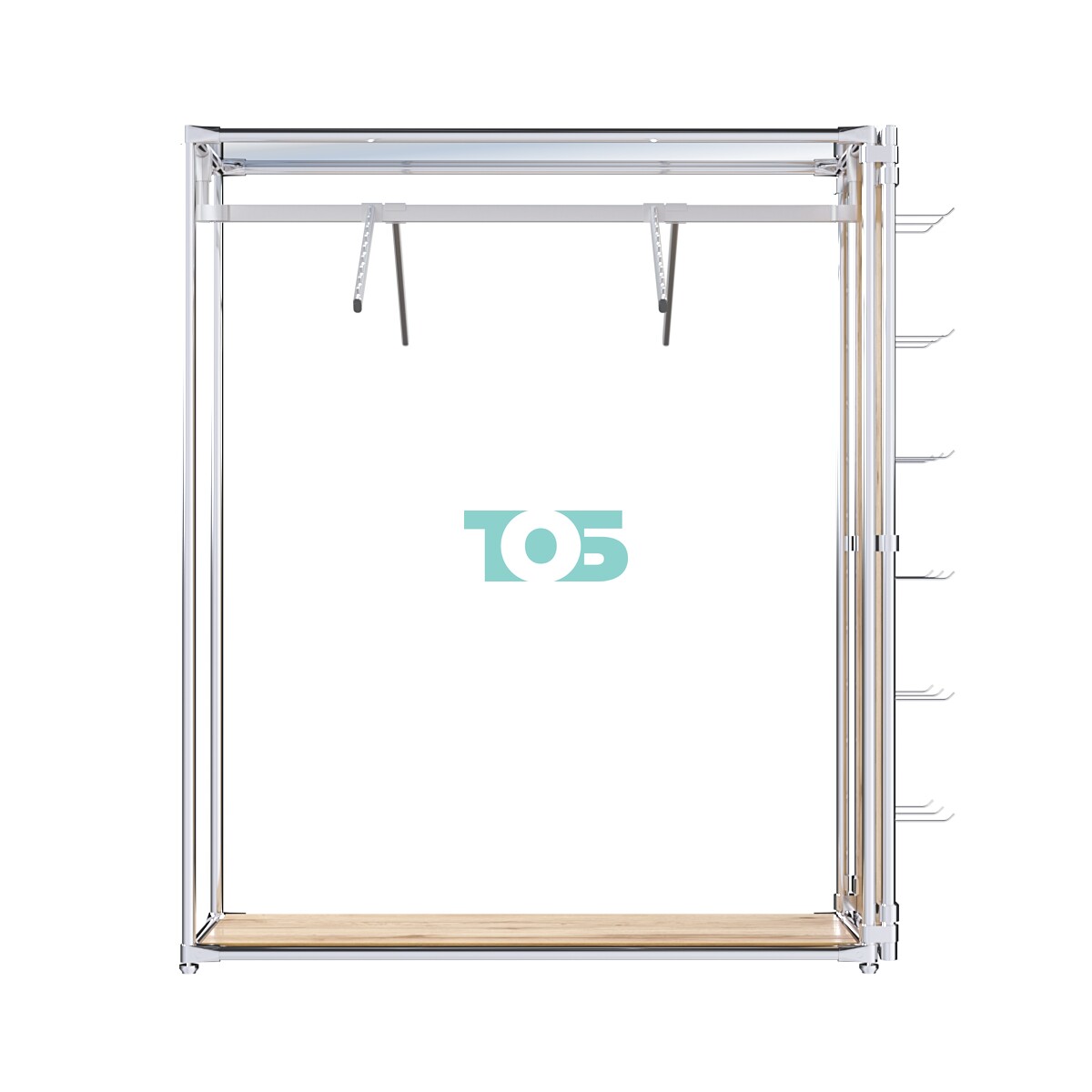 Один внутренний поручень под выносные кронштейны: Предназначен для одежды с фасадной вывеской, обеспечивая надежное размещение.